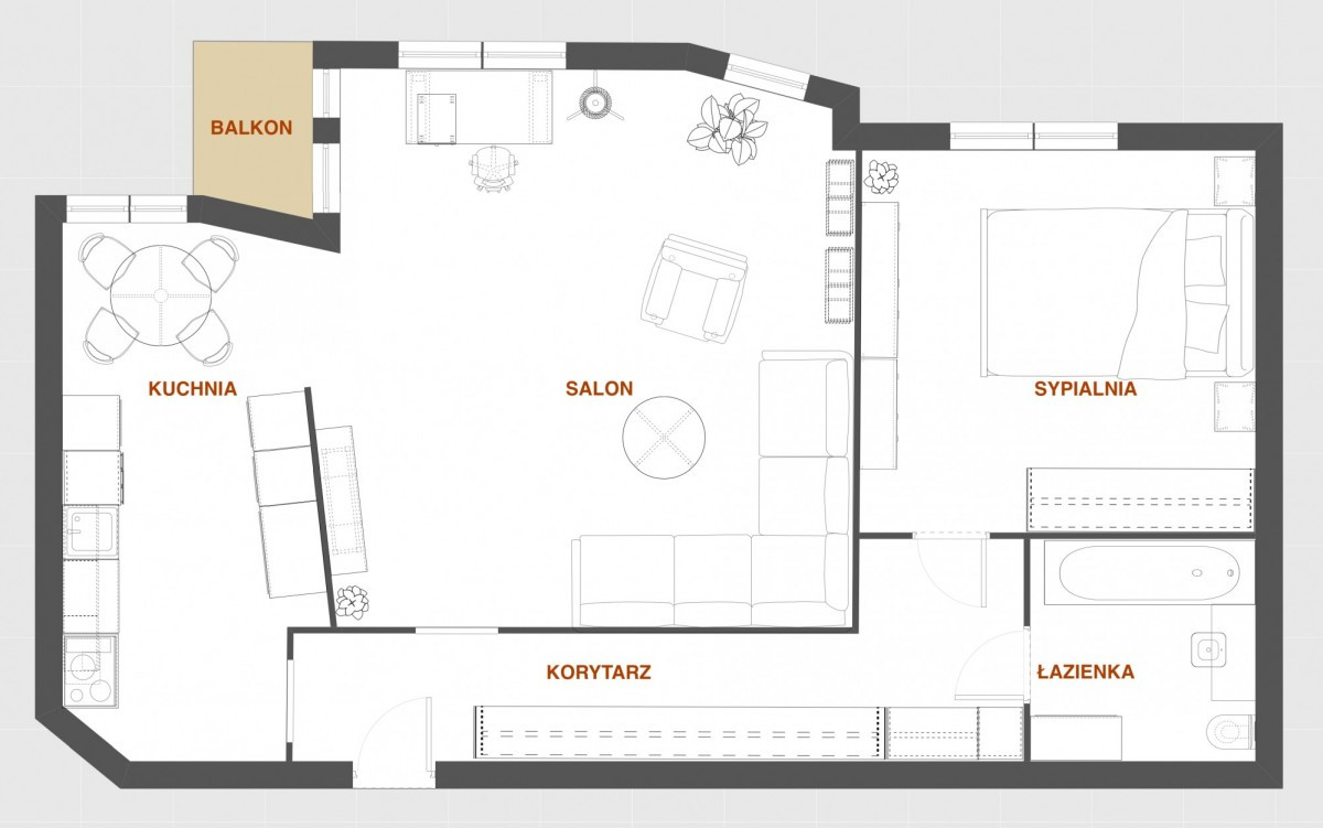 • 54,6 m² starannie zaprojektowanej przestrzeni