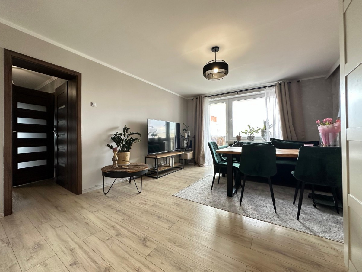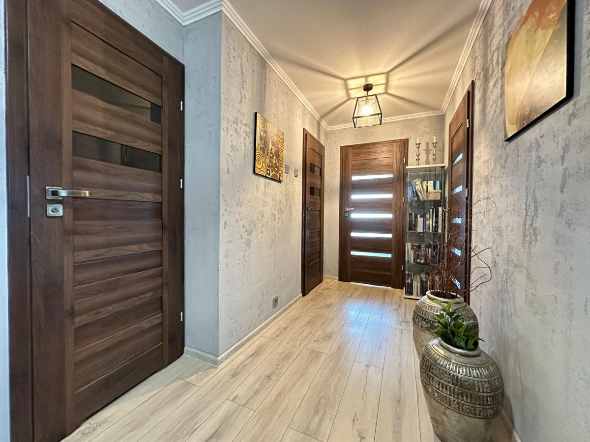 Układ pomieszczeń: 4 pokoje, kuchnia, przedpokój, 1 łazienka, 1 osobne WC