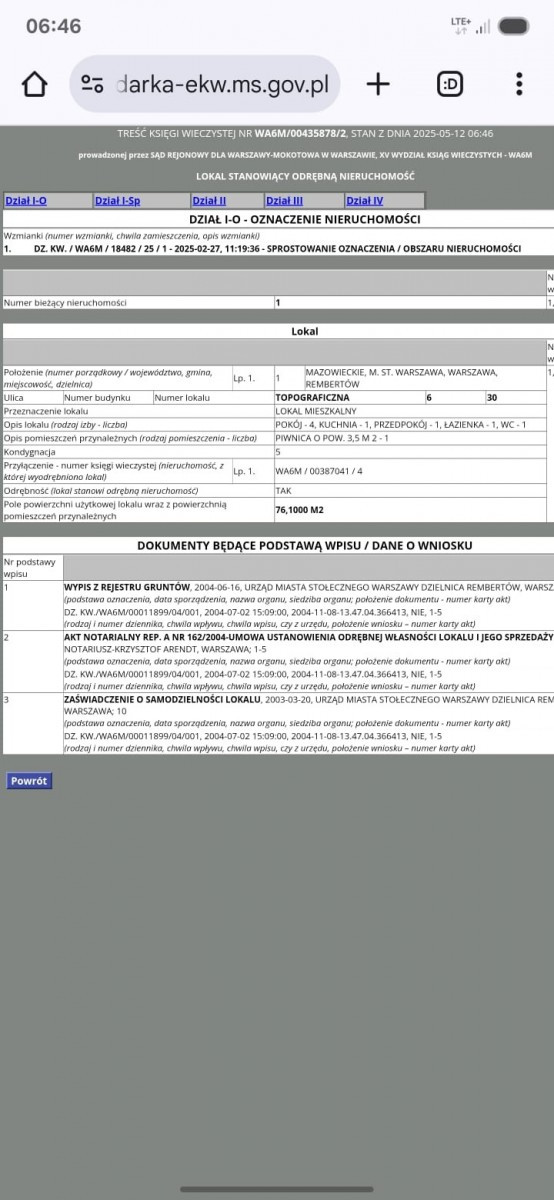 Status prawny: Pełna własność - lokal stanowi odrębną nieruchomość