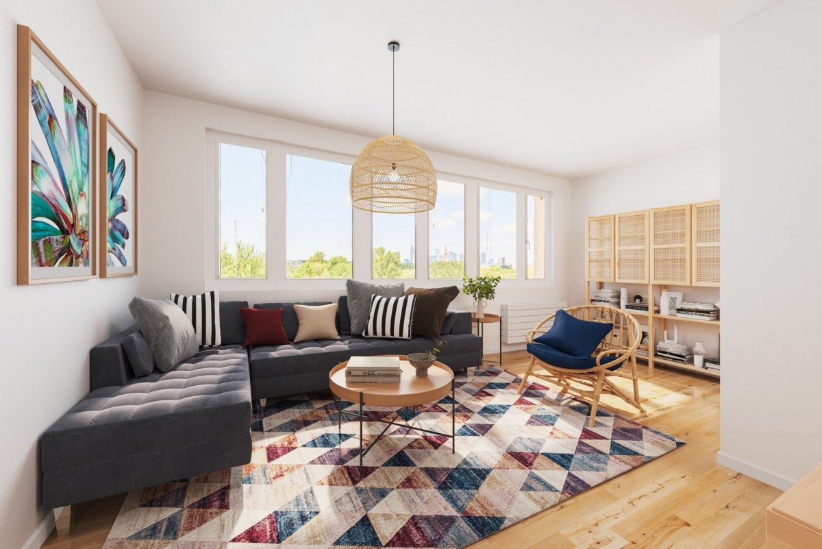 przestronnego salonu z widokiem na Wisłę i panoramę miasta (19,38m2)