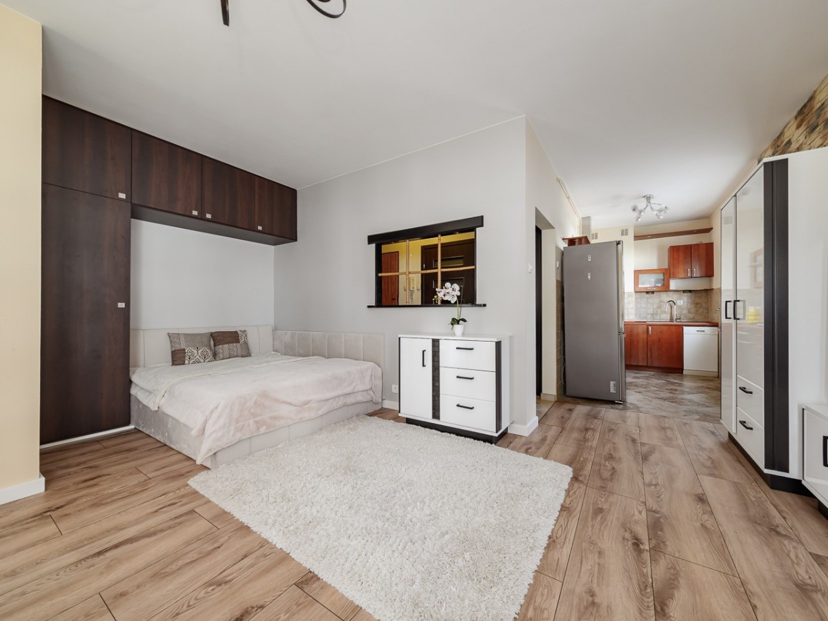 Na sprzedaż przytulna kawalerka o powierzchni 39,6m2 znajdująca się na drugim piętrze budynku przy Odkrytej 46 na Nowodworach.