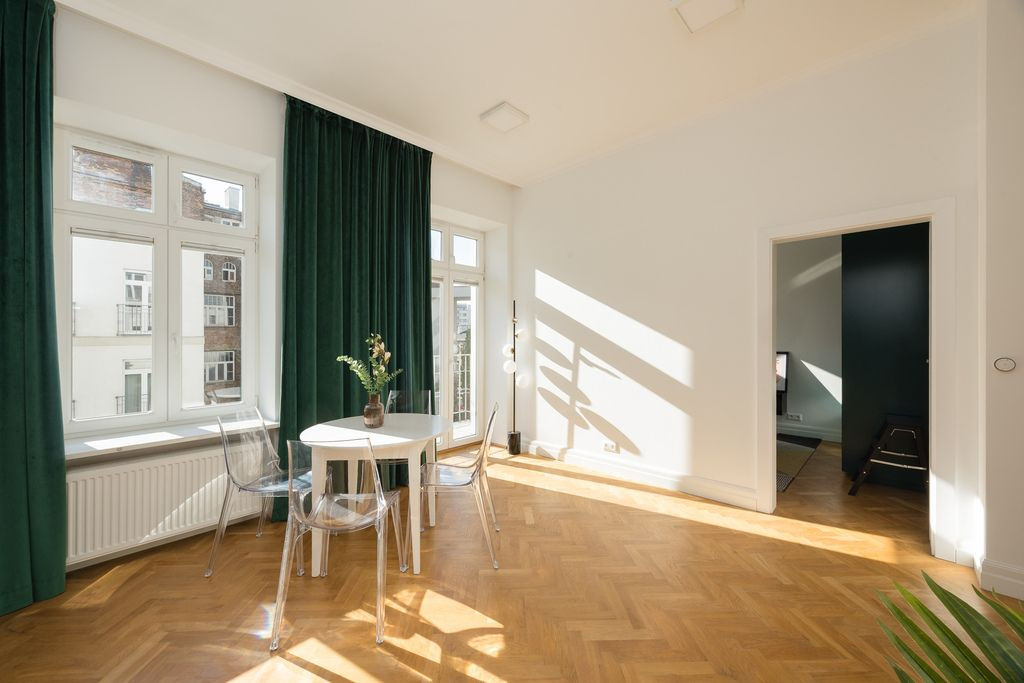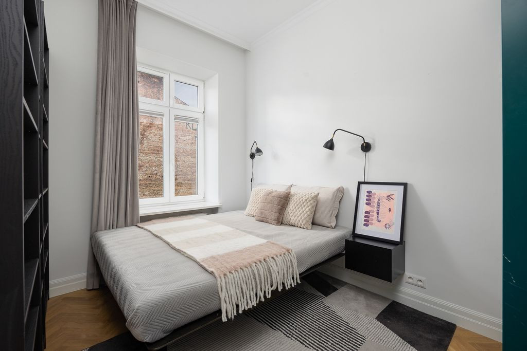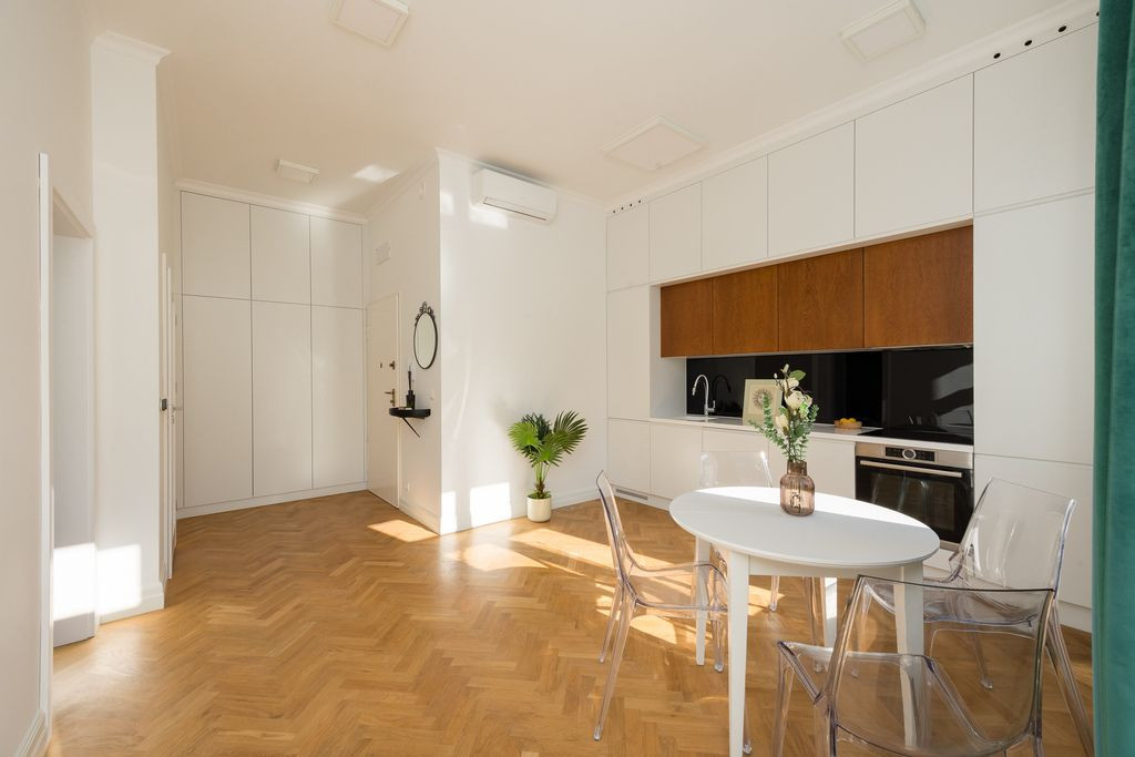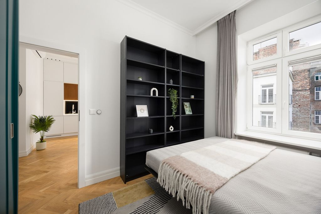 Dwupokojowe mieszkanie na warszawskiej Pradze-Północ położone na czwartym piętrze pięciopiętrowej, zrewitalizowanej kamienicy z 1912 roku przy ul. Targowej 21.Lokal o powierzchni 35,50 m² został wykończony w podwyższonym standardzie, z wyjątkową dbałością o detale i zachowaniem klimatu przedwojennej architektury. Dzięki południowo-zachodniej ekspozycji okien mieszkanie jest doskonale doświetlone przez cały dzień, a jednocześnie ciche, ponieważ okna wychodzą na wewnętrzny, zadbany dziedziniec.Część dzienna to salon z aneksem kuchennym, zaprojektowany w sposób funkcjonalny i estetyczny. Kuchnia wykonana na zamówienie, z blatem i zlewem z konglomeratu, została wyposażona w wysokiej klasy sprzęt AGD: lodówkę, zmywarkę, piekarnik oraz płytę indukcyjną.W sypialni znajduje się wygodne, dwuosobowe łóżko oraz pojemna szafa na wymiar, zapewniająca dużą ilość miejsca do przechowywania. Łazienka została urządzona w eleganckim stylu, z wykorzystaniem wysokiej jakości materiałów i przemyślaną zabudową, która gwarantuje komfort użytkowania.Mieszkanie jest sprzedawane z pełnym wyposażeniem widocznym na zdjęciach, dzięki czemu nowy właściciel może wprowadzić się od razu, bez dodatkowych nakładów. Dodatkowym atutem jest klimatyzacja. Wysokość pomieszczeń wynosi aż 330 cm, co nadaje mieszkaniu reprezentacyjnego charakteru. Na podłogach znajduje się drewniany parkiet w doskonałym stanie.To wyjątkowa przestrzeń, która łączy urok historycznej kamienicy z nowoczesnym stylem życia – idealna propozycja dla osób poszukujących eleganckiego i gotowego do zamieszkania mieszkania w jednej z najbardziej klimatycznych części Warszawy.BUDYNEKKamienica przy Targowej 21 została wzniesiona w 1912 roku i w pełni zrewitalizowana w 2019 roku przez renomowaną firmę Fenix Group, znaną z przywracania blasku najpiękniejszym warszawskim kamienicom (m.in. inwestycje przy Próżnej, Koszykowej czy w Alejach Ujazdowskich).Rewitalizacja objęła kompleksowe odnowienie elewacji, klatek schodowych i części wspólnych, z zachowaniem oryginalnych detali – sztukaterii, balustrad, stolarki drzwiowej i okiennej. Kamienica zyskała również nowoczesną windę, całkowicie wymienione instalacje oraz zadbany, zielony dziedziniec wewnętrzny, który stanowi ciche i przyjemne miejsce odpoczynku dla mieszkańców.To przykład rewitalizacji przeprowadzonej z wyjątkowym poszanowaniem historii, w połączeniu z najwyższym standardem współczesnego wykonania.LOKALIZACJATargowa 21 to adres w samym sercu Starej Pragi – dzielnicy, która w ostatnich latach przeszła niezwykłą metamorfozę. W sąsiedztwie znajdziesz modne restauracje, kawiarnie, puby i galerie sztuki, a także liczne sklepy i punkty usługowe.Zaledwie kilka minut spaceru dzieli budynek od stacji metra Stadion Narodowy, przystanków tramwajowych i autobusowych, co zapewnia doskonałą komunikację z pozostałymi częściami Warszawy.Miejsce to łączy w sobie tętniące życiem miejskie otoczenie z klimatem dawnej Pragi – idealne dla osób, które cenią autentyczną, historyczną zabudowę i bliskość centrum miasta.STAN PRAWNYPełna własność z księgą wieczystą, możliwość zakupu na kredyt. Nieruchomością zarządza wspólnota, czynsz wynosi ok. 500 zł/msc.