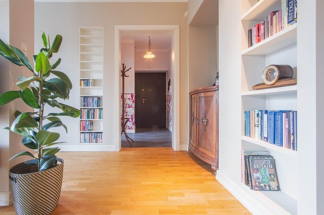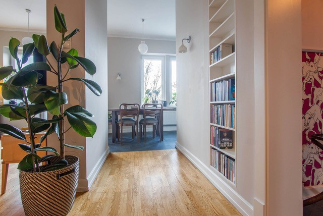Funkcjonalny układ pomieszczeń. Do każdego pokoju niezależne wejście (jedna sypialnia ma dodatkowe wejście z salonu przez podwójne dwuskrzydłowe drzwi) Na podłodze we wszystkich pokojach dębowy parkiet, w dwóch sypialniach duże szafy w zabudowie.