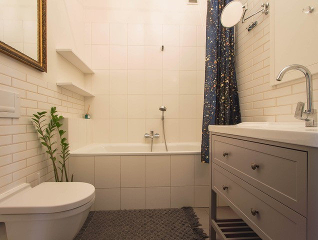 Dwie sypialnie (28m i 21m jedna z balkonem) z widokiem na zielony ogród i domy jednorodzinne (cicha strona i ładny widok). Łazienka z wanną razem z WC (3,7m), przedpokój (9 m) z szafą wnękową.