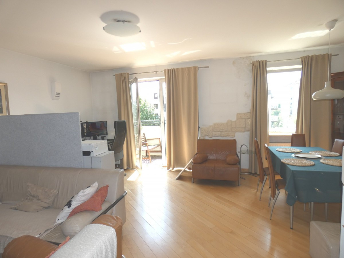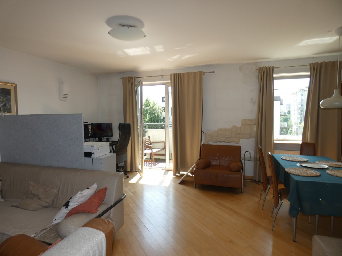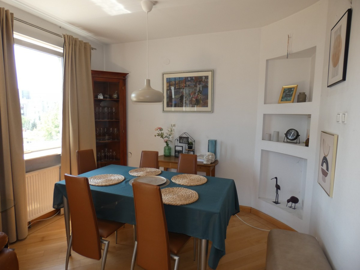 Na 3 piętrze salon z wyjściem na balkon, pokój, kuchnia widna, wc z prysznicem. Okna nie wychodzą na ul. Powstańców Śląskich i nie słychać hałasu z ulicy.
