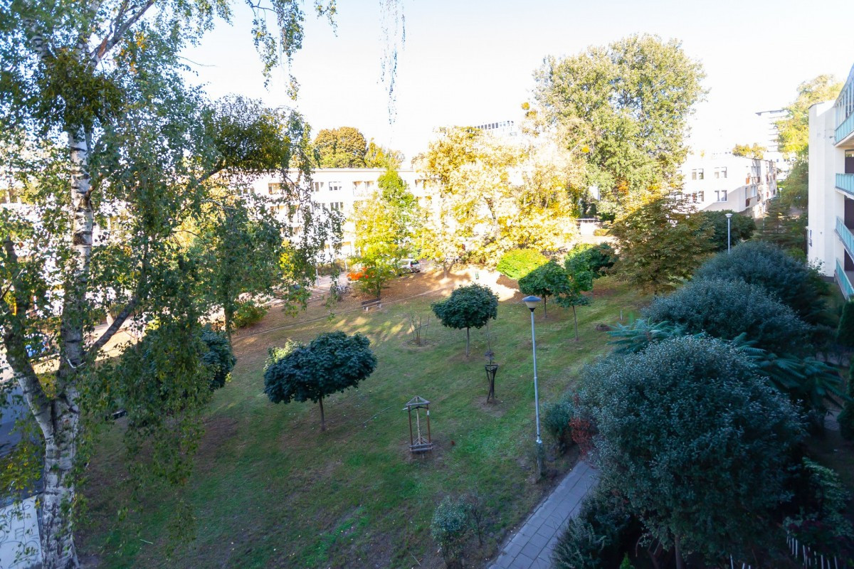 Wnętrze mieszkania jest dobrze doświetlone dzięki dużym oknom, z widokiem na zieleń. Wysokość stropów to 2,7m.