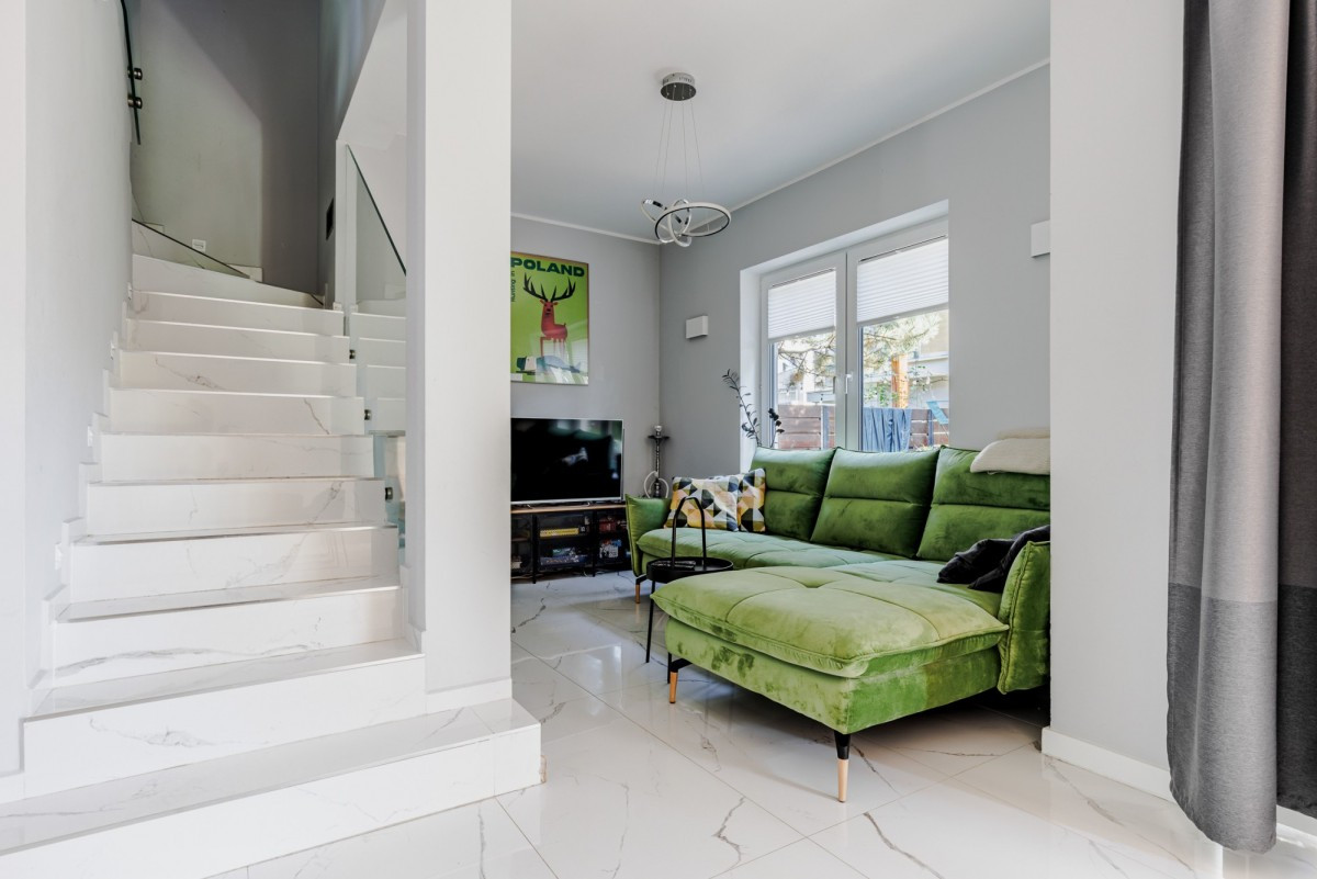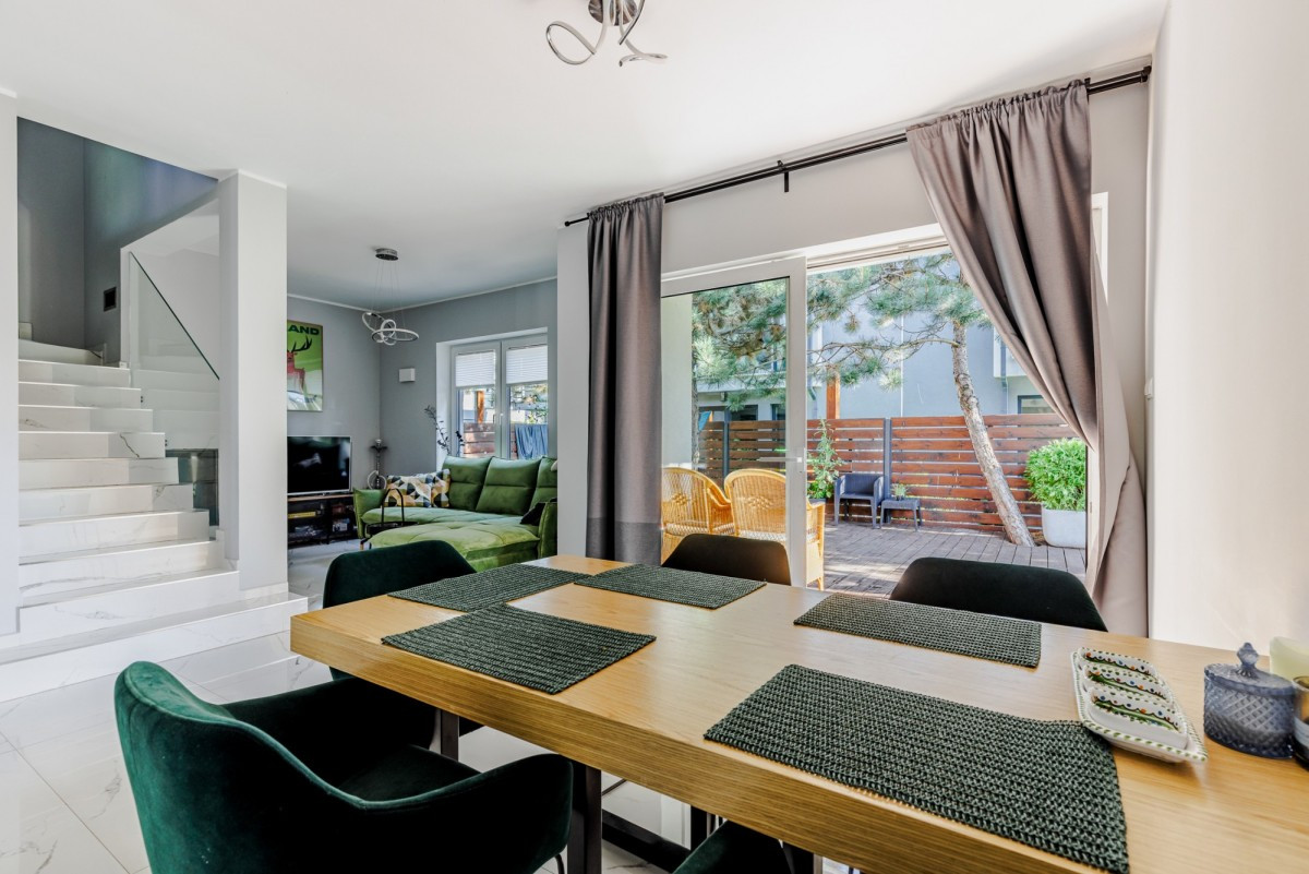 Nieruchomość usytuowana w zacisznej, kameralnej uliczne na zamkniętym terenie. Okolica domu świetnie się rozwija oferując mieszkańcom coraz większe możliwości oraz komfort, w pobliżu również znajdziemy szkoły, restauracje, sklepy, apteki czy trasę szybkiego ruchu.