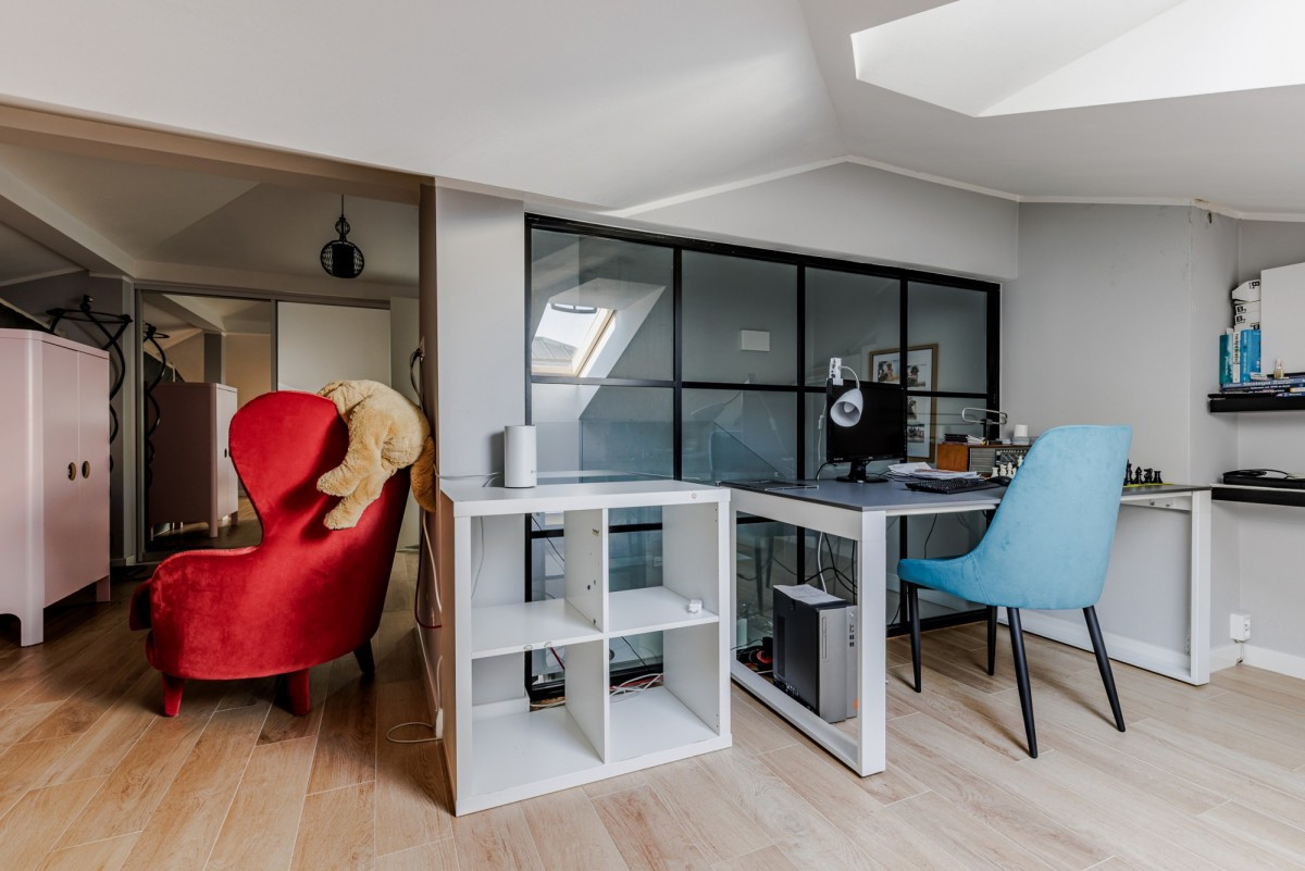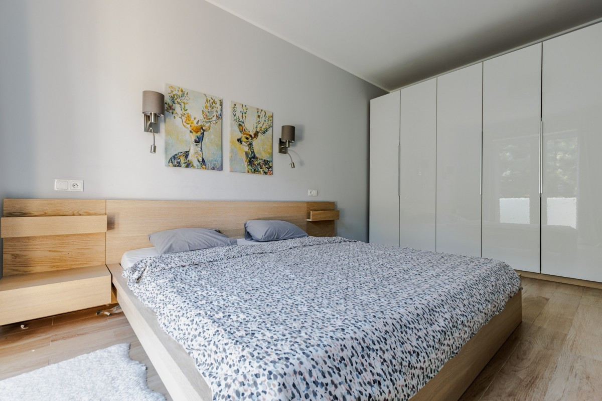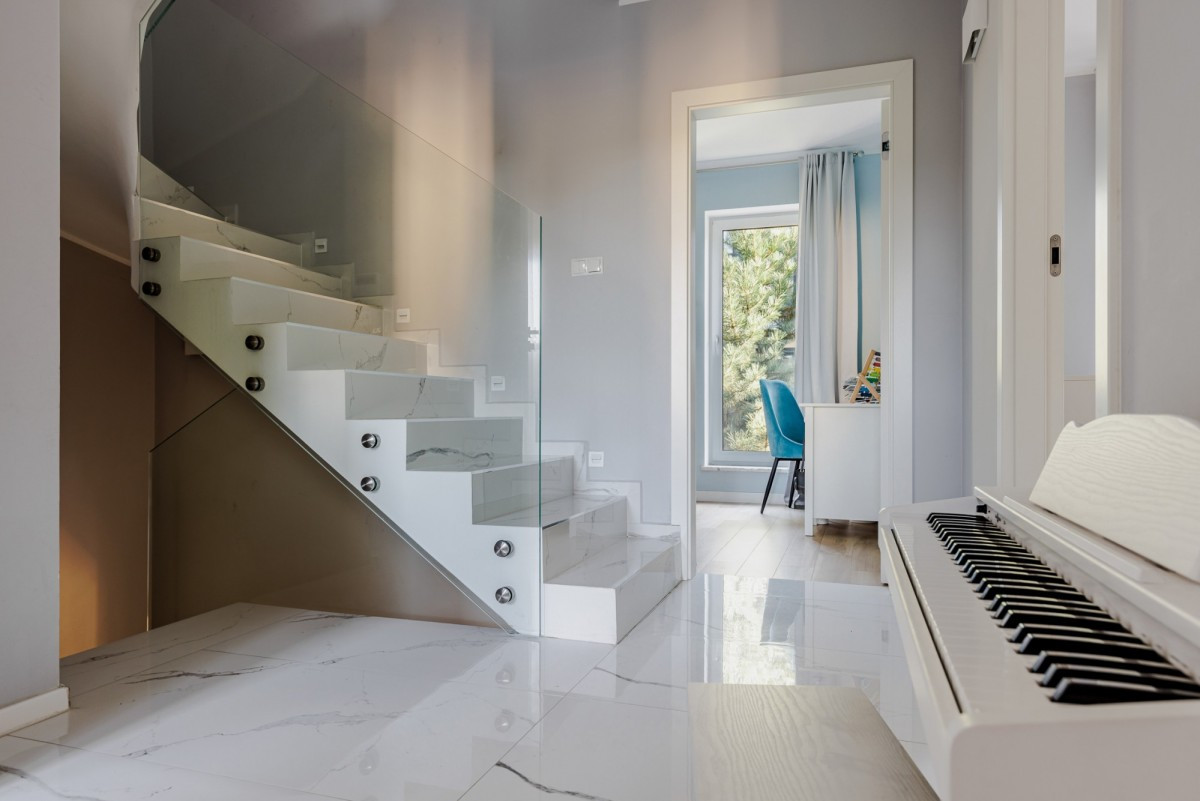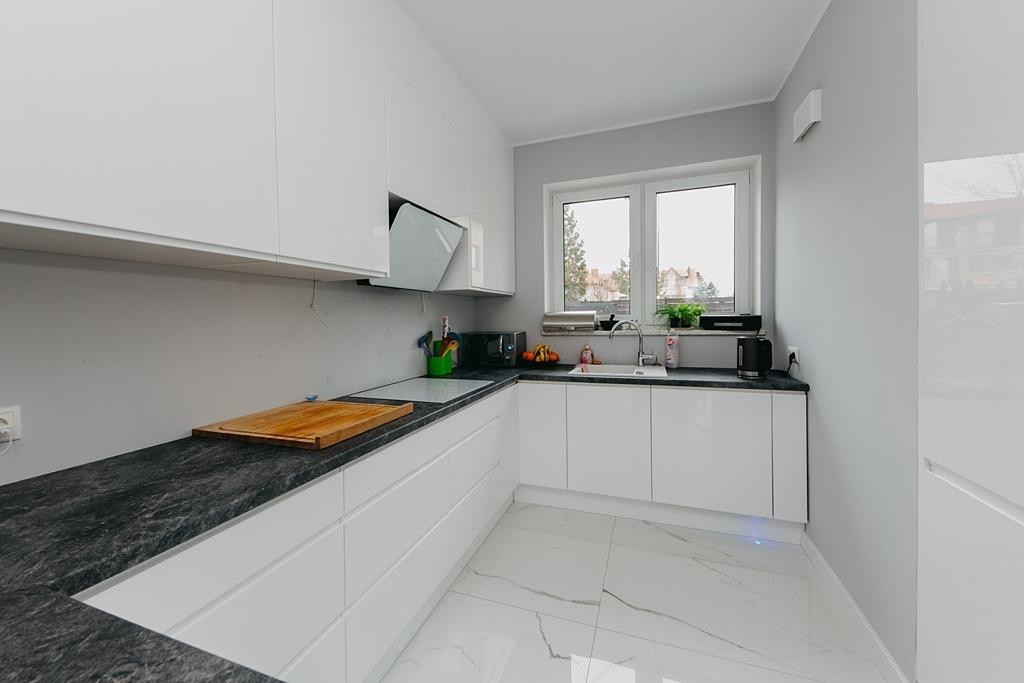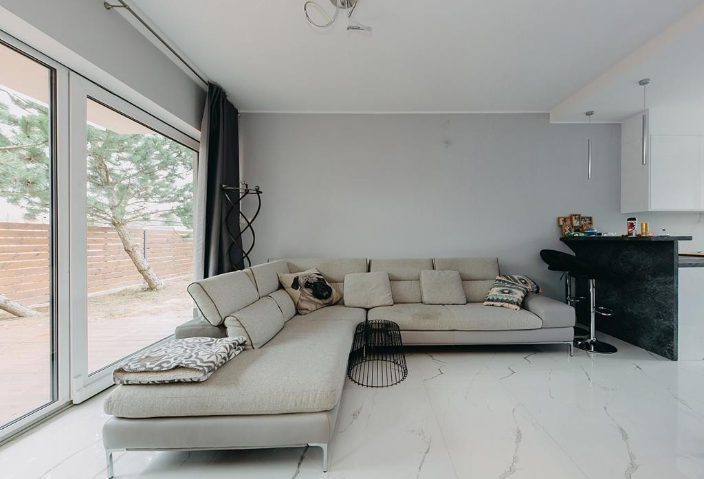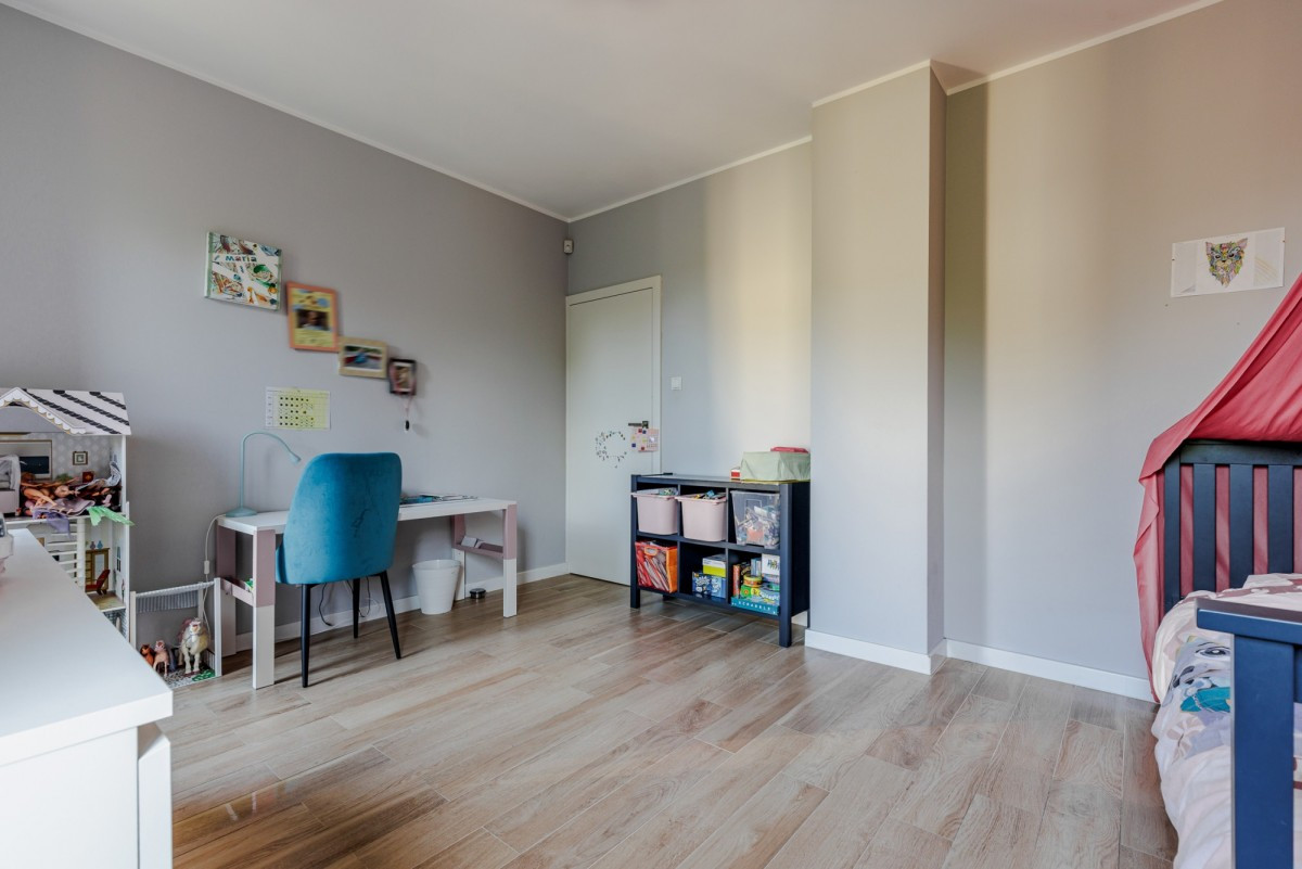 Dom wykończony jest z dbałością o detale. Doskonały rozkład pomieszczeń, przestronność jak i obfitość w naturalne światło to kolejne walory nieruchomości. W skład nieruchomości wchodzi otwarta kuchnia na salon z którego można wyjść na taras, łazienka wyposażona w wannę, druga łazienka wyposażona w prysznic, toaleta dla gości, sypialnia typu master, dwie sypialnie dziecięce, oraz sypialnia gościnna na poddaszu. Do nieruchomości przynależy również garaż.