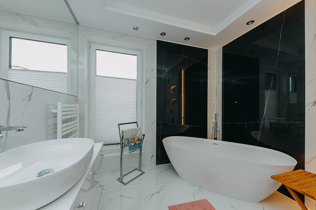 Budynek charakteryzuje się bardzo elegancką, klasyczną formą oraz został wykończony w wysokiej jakości przy użyciu najbardziej innowacyjnych technik budowlanych.