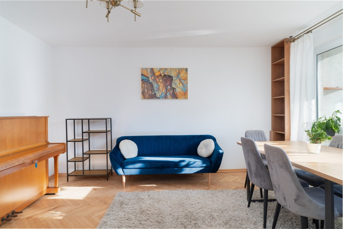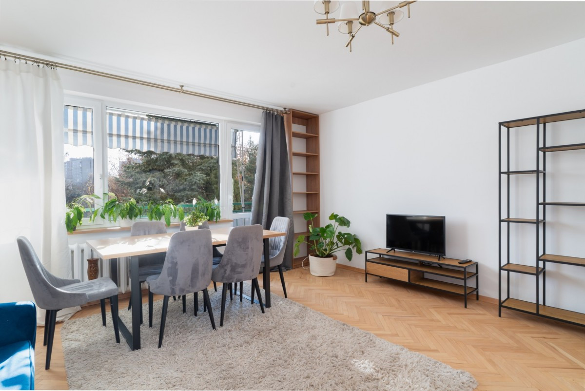 Mieszkanie jest po generalnym remoncie generalnym, gotowe do wprowadzenia bez dodatkowych nakładów finansowych. Wnętrze jest utrzymane w nowoczesnym, przytulnym stylu. Okna z salonu i jednej z sypialni mają ekspozycję zachodnią, a kuchnia i druga sypialnia wychodzą na wschód. Dwustronny układ zapewnia doskonałe doświetlenie i funkcjonalny podział przestrzeni. Z okien rozpościera się piękny widok na zieleń. Do mieszkania przynależy piwnica.