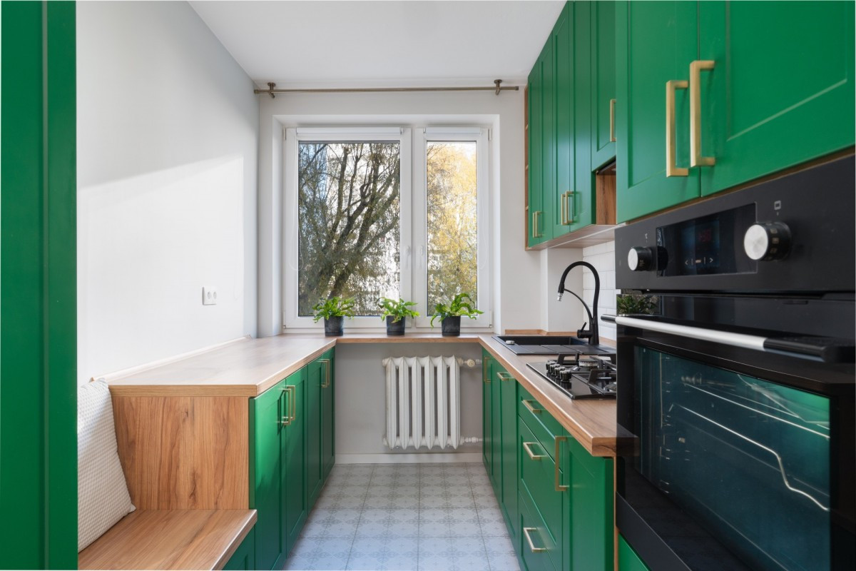 - kuchni wyposażonej w meble na wymiar oraz sprzęt AGD do zabudowy