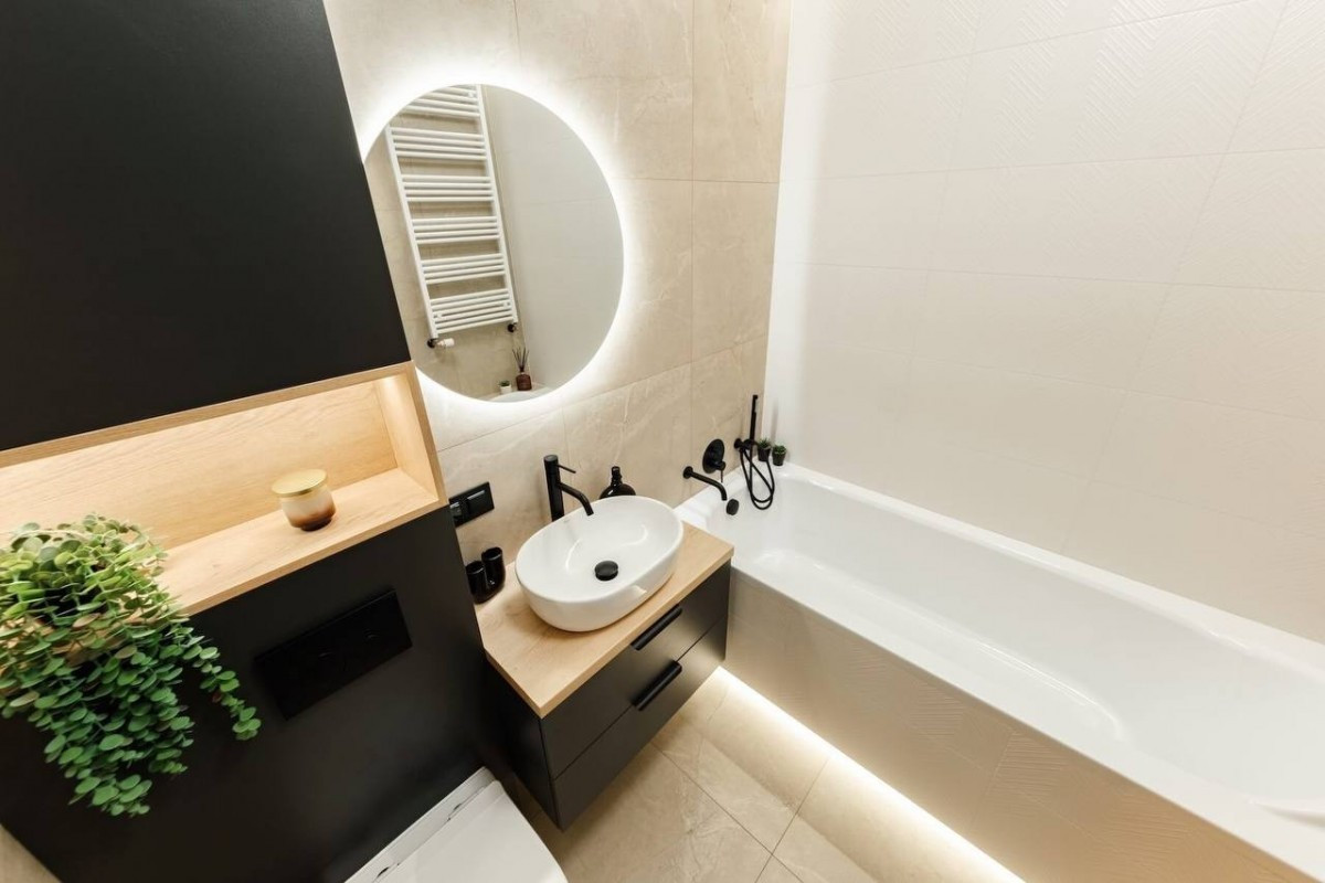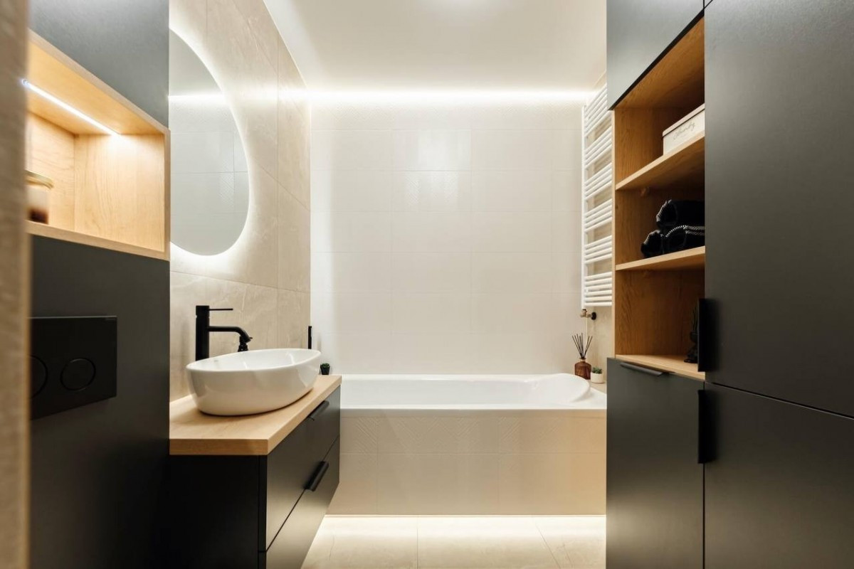 • Profesjonalna zabudowa stolarska w całym mieszkaniu, nowe sprzęty AGD;