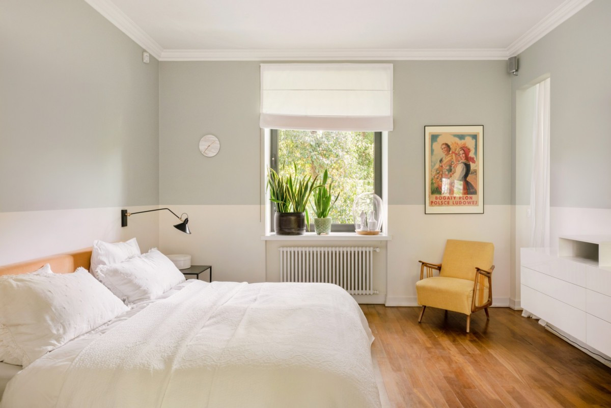 Główna sypialnia z własną łazienką z oknem i garderobą