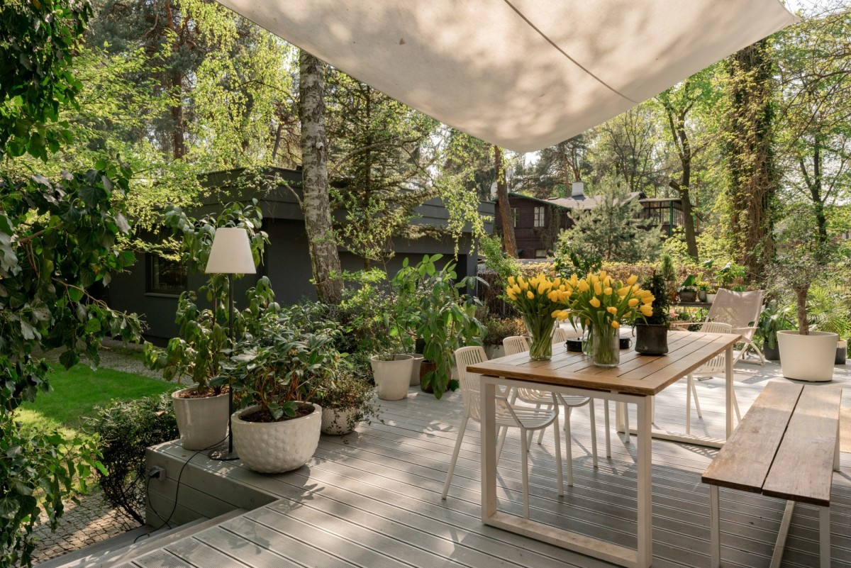 The property sits on a beautifully maintained plot with old trees of 1412 square metres and has an ideal exposure to the sides of the world: