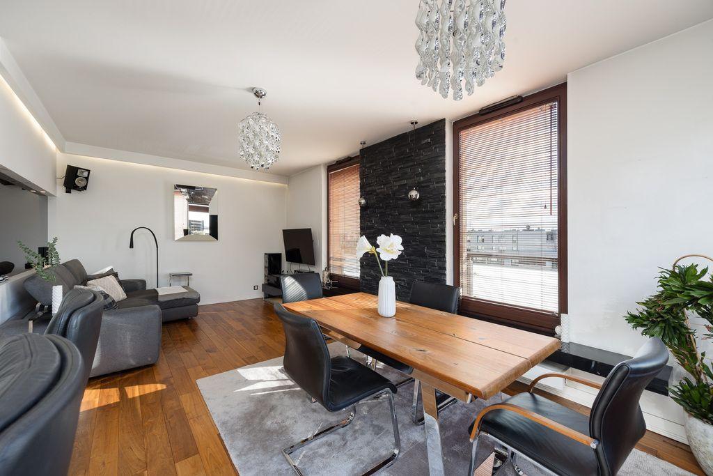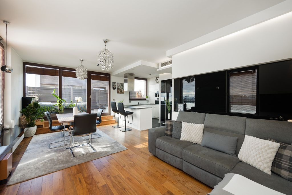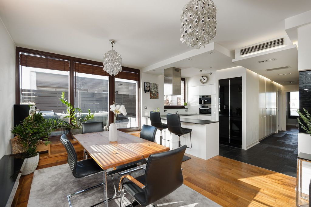 Luksusowy apartament z dużym tarasem położony na ostatnim, czwartym piętrze budynku z 2009 roku przy Alei Rzeczypospolitej 18, w inwestycji Scandinavian House na terenie Miasteczka Wilanów.Nieruchomość o powierzchni 77 m2 składa się z następujących pomieszczeń:- salon z jadalnią – 26,70 m²,- kuchnia – 6,60 m²,- sypialnia – 13,80 m²,- pokój – 10,40 m²,- hol – 10,50 m²,- garderoba – 1,50 m²,- łazienka – 7,50 m².Do mieszkania przynależą:- taras o powierzchni 55 m²,- 2 rodzinne miejsca parkingowe w garażu podziemnym (standardowe, nie platforma),- komórka lokatorska ok. 4,5 m2.Miejsca parkingowe i komórka dodatkowo płatne - 150.000 zł łącznieApartament został zaprojektowany przez architekta z dbałością o każdy szczegół. Wszystkie zabudowy meblowe wykonano na wymiar, z materiałów wysokiej klasy.Podłogi wykończono deską orzechową olejowaną oraz naturalnym łupkiem z Brazylii. W łazience zastosowano ogrzewanie podłogowe oraz umywalkę i wannę z pyłu wulkanicznego marki Victoria Albert. W kuchni znajduje się granitowy blat, lodówka na wino oraz pełne wyposażenie AGD w zabudowie (marki Miele, Siemens, De Dietrich, Liebherr). W salonie zamontowano biokominek oraz system nagłośnienia. Dodatkowy komfort zapewnia klimatyzacja kanałowa Toshiba z indywidualnym sterowaniem w każdym pomieszczeniu (jednostka zewnętrzna na dachu budynku).Do wykończenia zastosowano naturalne surowce, takie jak łupek, granit, wapień oraz orzech północnoamerykański. W mieszkaniu wykorzystano rozwiązania i wyposażenie marek klasy premium, m.in.: B&B Italia, Molteni, Minotti, Team7, KFF, Bossini, Graff, Miele, Siemens, De Dietrich, Liebherr, Victoria Albert, Vitra, Glass Italia.55-metrowy taras zapewnia ciszę, prywatność i przyjemny widok na Oś Królewską oraz zielone, zadbane patio. Wyposażony w oświetlenie i automatyczną markizę, stanowi funkcjonalne przedłużenie przestrzeni dziennej.Mieszkanie jest dobrze doświetlone, okna skierowane są na południe, zachód i północ. Nieruchomością zarządza wspólnota, czynsz wynosi ok. 1200 zł/msc. Stan prawny: pełna własność z księgą wieczystą, możliwość zakupu na kredyt. INWESTYCJA:Scandinavian House to kameralny kompleks apartamentowy zrealizowany przez duńskiego dewelopera Sjaelso Poland. Budynek wyróżnia się nowoczesną, ponadczasową architekturą oraz wysokim standardem wykonania. Inwestycja została zaprojektowana z myślą o komforcie mieszkańców - posiada całodobową ochronę, monitoring, recepcję oraz zielone patio z nasadzeniami roślin ozdobnych.Części wspólne wykonano z wysokiej jakości materiałów, a minimalistyczna, jasna elewacja nawiązuje do skandynawskiego designu - prostego, eleganckiego i funkcjonalnego.LOKALIZACJA:Apartament położony jest w centralnej części Miasteczka Wilanów. Okolica wyróżnia się nowoczesną architekturą, licznymi terenami zielonymi i pełną infrastrukturą miejską.Na parterze budynku znajduje się wiele lokali usługowych, które zapewniają mieszkańcom codzienną wygodę. Wśród nich m.in. lodziarnia Grycan, warzywniak, Żabka, apteka, salony fryzjerskie Haircut Express i Damian’s Barber Shop, a także delikatesy greckie Deli Padre.W bezpośrednim sąsiedztwie znajdują się liczne restauracje, kawiarnie, sklepy, punkty usługowe, apteki, przedszkola oraz szkoły międzynarodowe. W bliskiej odległości położone są również tereny rekreacyjne, ścieżki spacerowe i trasy rowerowe prowadzące w kierunku Konstancina i Mokotowa.Doskonałą komunikację zapewniają przystanki autobusowe i tramwajowe zlokalizowane w zasięgu dwóch minut pieszo. Połączenia autobusowe i nowa linia tramwajowa umożliwiają szybki dojazd do centrum miasta w czasie ok. 25–30 minut.___________A luxurious two-bedroom apartment with a large terrace, located on the top (fourth) floor of the prestigious Scandinavian House development at 18 Rzeczypospolitej Avenue, in the heart of Miasteczko Wilanów.The property offers 77 m² of beautifully designed living space, comprising:- Living room with dining area – 26.7 m²- Kitchen – 6.6 m²- Master bedroom – 13.8 m²- Second bedroom – 10.4 m²- Hallway – 10.5 m²- Walk-in wardrobe – 1.5 m²- Bathroom – 7.5 m²Additionally included:A 55 m² terrace with views over Oś Królewska and the landscaped courtyardTwo family-size parking spaces in the underground garage (standard, not on a platform)Storage unit of approx. 4.5 m²(Parking spaces and storage unit sold together – PLN 150,000)The apartment was individually designed by an architect with great attention to detail. All built-in furniture was made to measure using premium materials.Floors feature oiled walnut wood and natural Brazilian slate, while the bathroom includes underfloor heating and a freestanding bathtub by Victoria Albert made from volcanic limestone.The kitchen is equipped with a granite countertop, a wine fridge, and full built-in appliances (Miele, Siemens, De Dietrich, Liebherr).The living area features a bio-fireplace, an integrated sound system, and ducted air conditioning by Toshiba with individual room control.Natural materials such as slate, granite, limestone, and North American walnut create a refined, timeless aesthetic.Furnishings and finishes come from world-renowned brands including B&B Italia, Molteni, Minotti, Team7, KFF, Bossini, Graff, Miele, Siemens, De Dietrich, Liebherr, Victoria Albert, Vitra, and Glass Italia.The 55 m² terrace offers privacy, peace, and open views - equipped with lighting and an automatic awning, it perfectly extends the living space outdoors.Triple exposure (south, west, and north) ensures beautiful natural light throughout the day.The building is managed by a well-run community; monthly fees are approximately PLN 1,200.Full ownership with a land and mortgage register – eligible for financing.The Development:Scandinavian House was developed by Sjaelso Poland, a Danish d