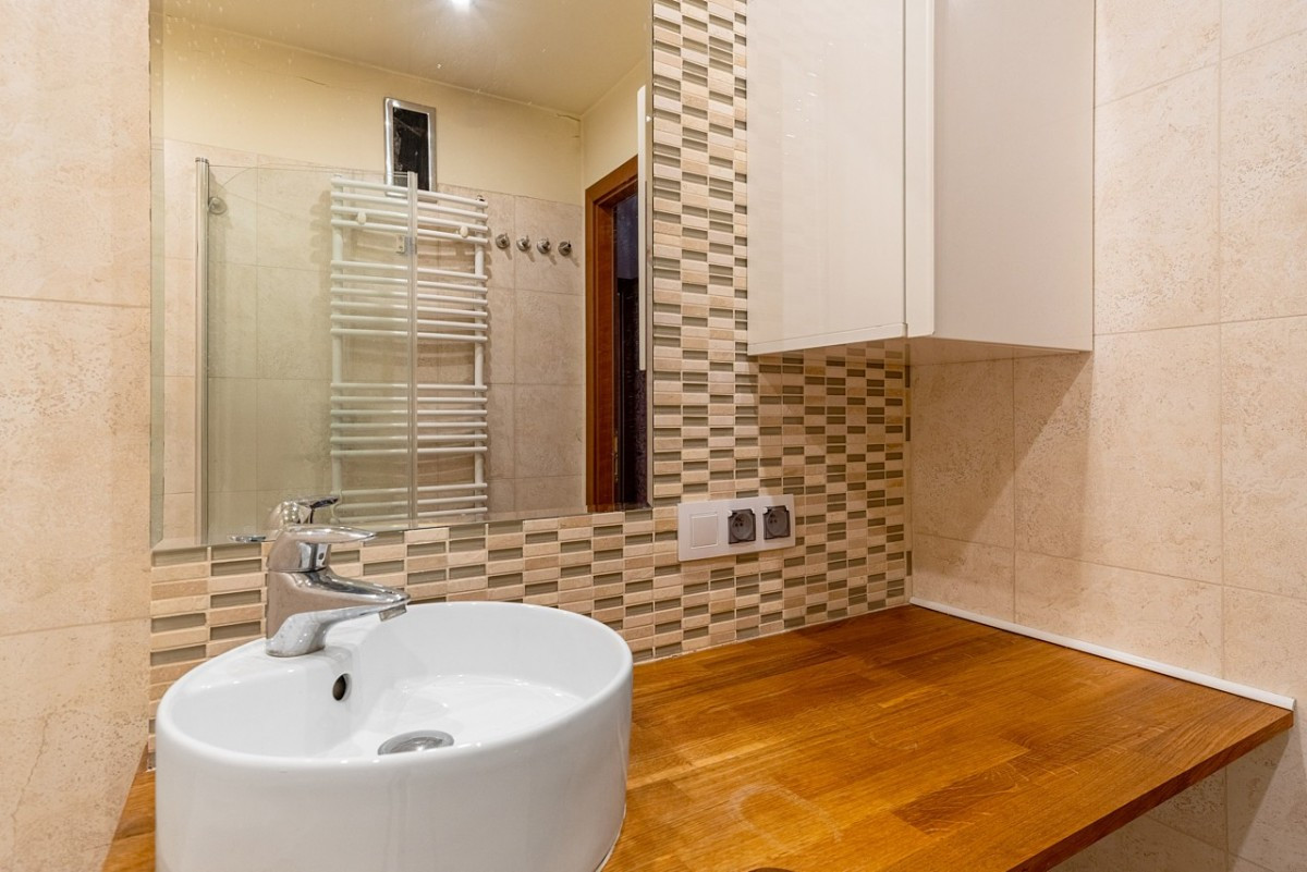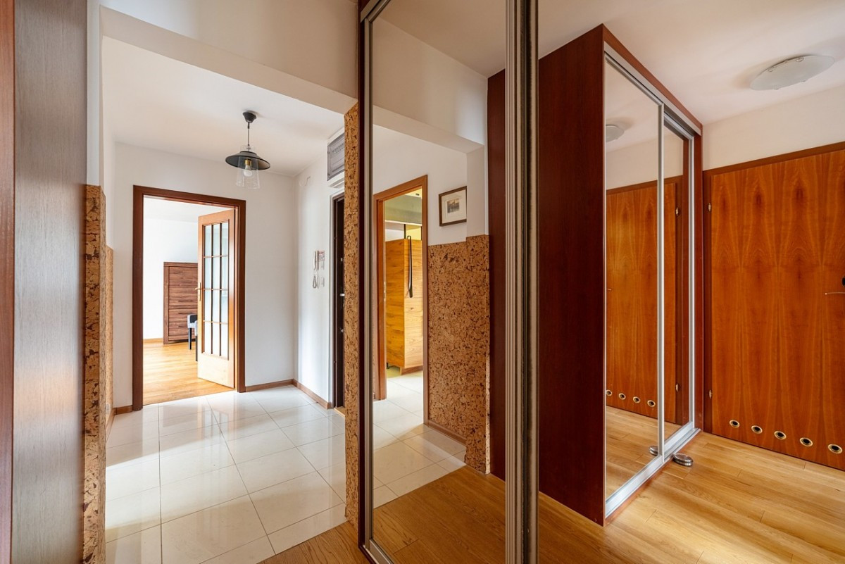 W mieszkaniu została wymieniona instalacja elektryczna oraz piony wodno- kanalizacyjne.