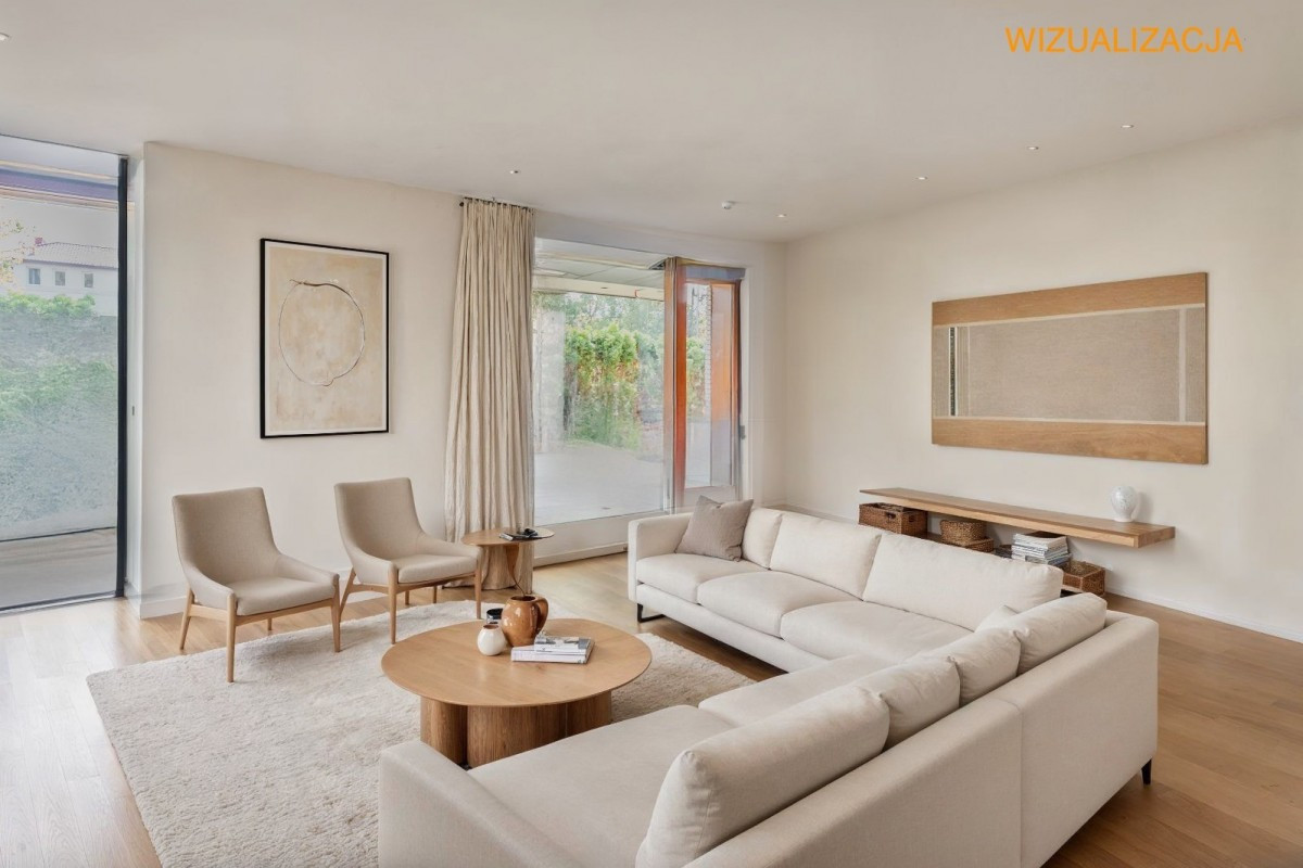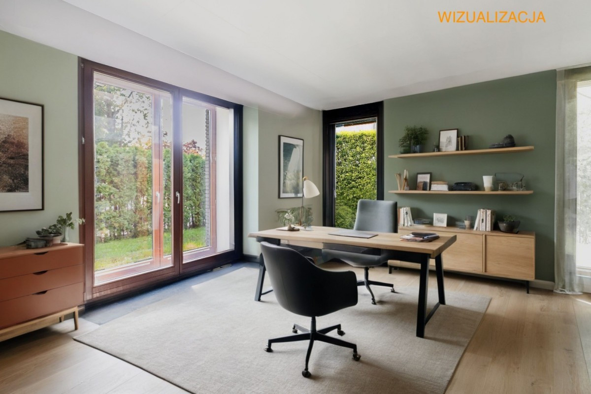 Sadyba | ul. Radosna. Apartament z ogródkiem, obecnie przestrzeń studyjna o powierzchni 189,20m2. wykorzystywana jako studio, może zostać przekształcona w komfortowy apartament - idealny dla osób poszukujących elegancji, ciszy i funkcjonalności. Komórka lokatorska i dwa miejsca postojowem w garażu podziemnym, ogródek.