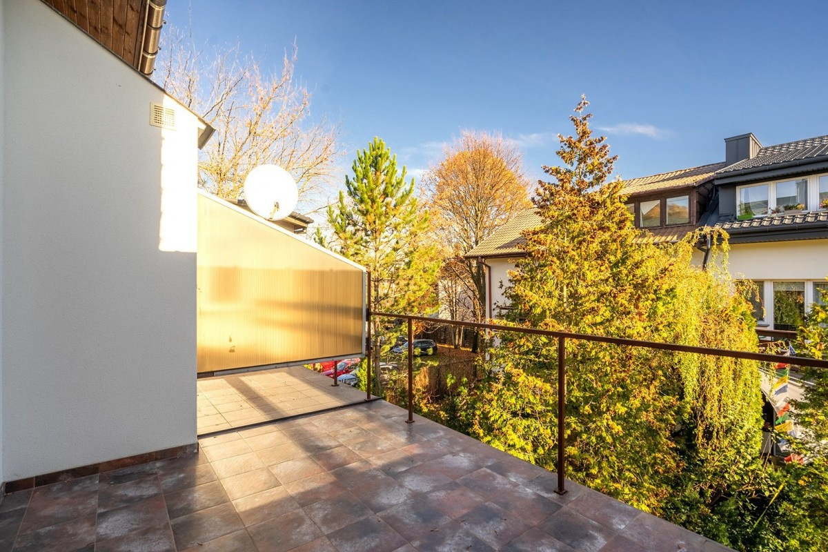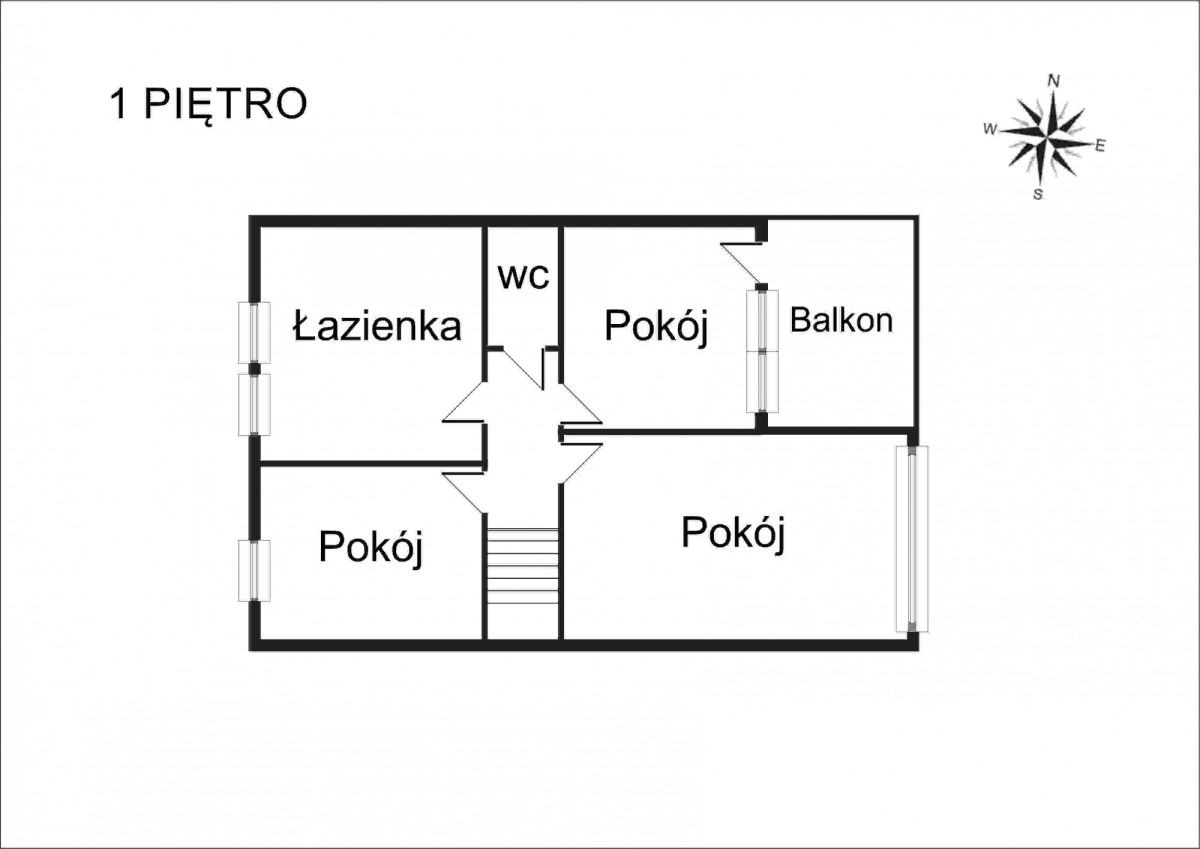 Piętro: dwa pokoje w tym jeden z wyjściem na taras, gabinet, łazienka, toaleta