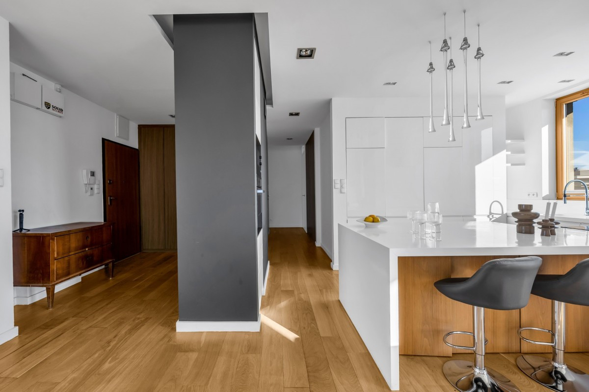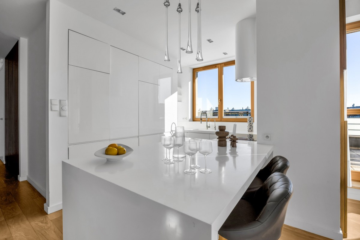 Na sprzedaż wyjątkowy apartament położony na ostatnim piętrze otoczony tarasem 162mkw, co gwarantuje prywatność, ciszę i piękny widok na zielone otoczenie.
