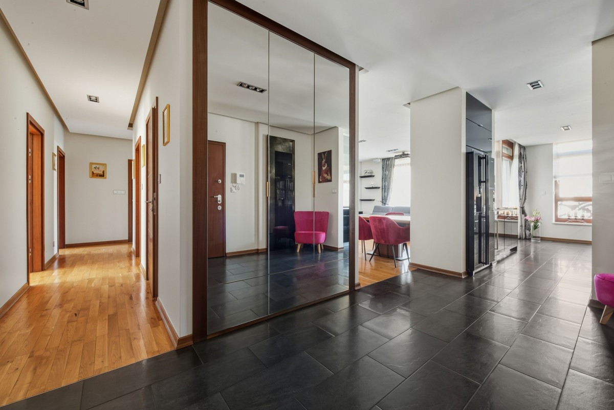 The apartment is sold with much of its equipment and furniture. The apartment boasts exceptional storage space - residents have access not only to a separate, lockable wardrobe and a storage unit on the terrace, but also to numerous built-ins and spacious wardrobes throughout.