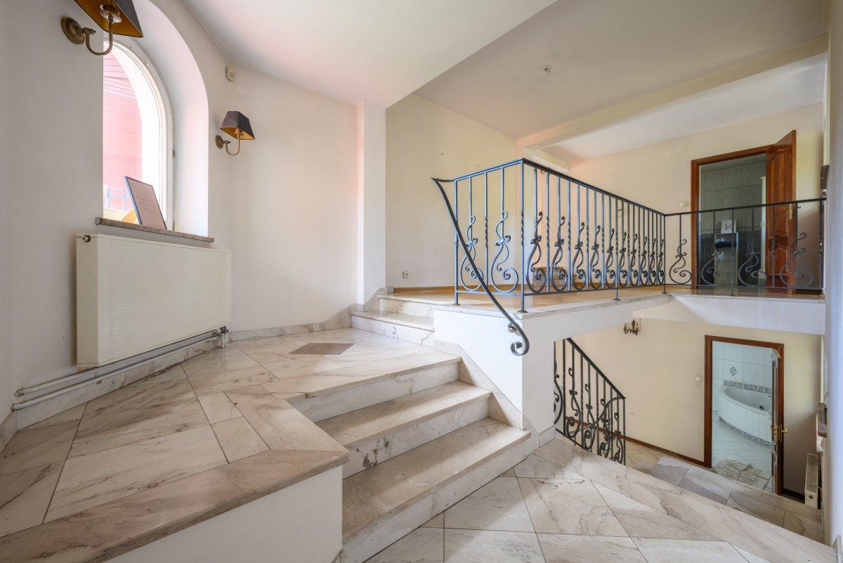 Dom znajduje się w malowniczej części Wawra, w pobliżu lasu sosnowego, co zapewnia spokój i wyjątkowy mikroklimat. Zadbany ogród z punktowym oświetleniem oraz kort tenisowy na mączce ceglanej to idealne miejsce na relaks i aktywność na świeżym powietrzu. Dodatkowo możliwość podziału działki to atut inwestycyjny.