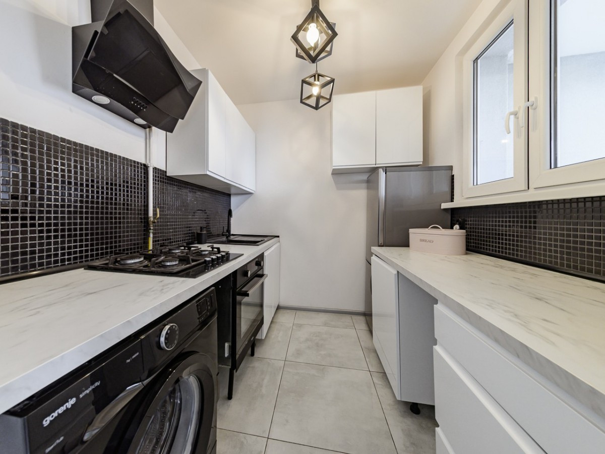 umeblowana i wyposażona kuchnia z oknem o pow. ok. 4,86 mkw,