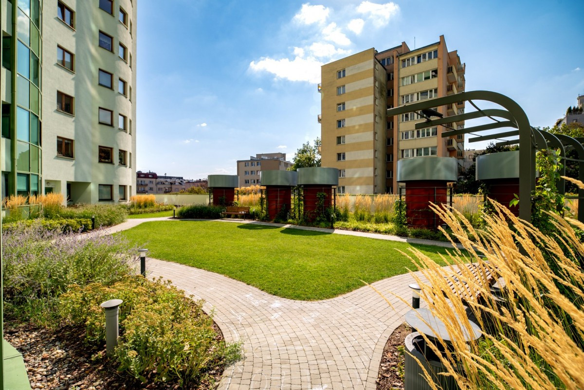 Budynek z 2003 roku, w bardzo dobrym stanie. Budynek jest monitorowany i chroniony. Na parterze budynku znajduje się sklep Biedronka, na 2. piętrze zielony ogród dostępny tylko dla mieszkańców budynku.