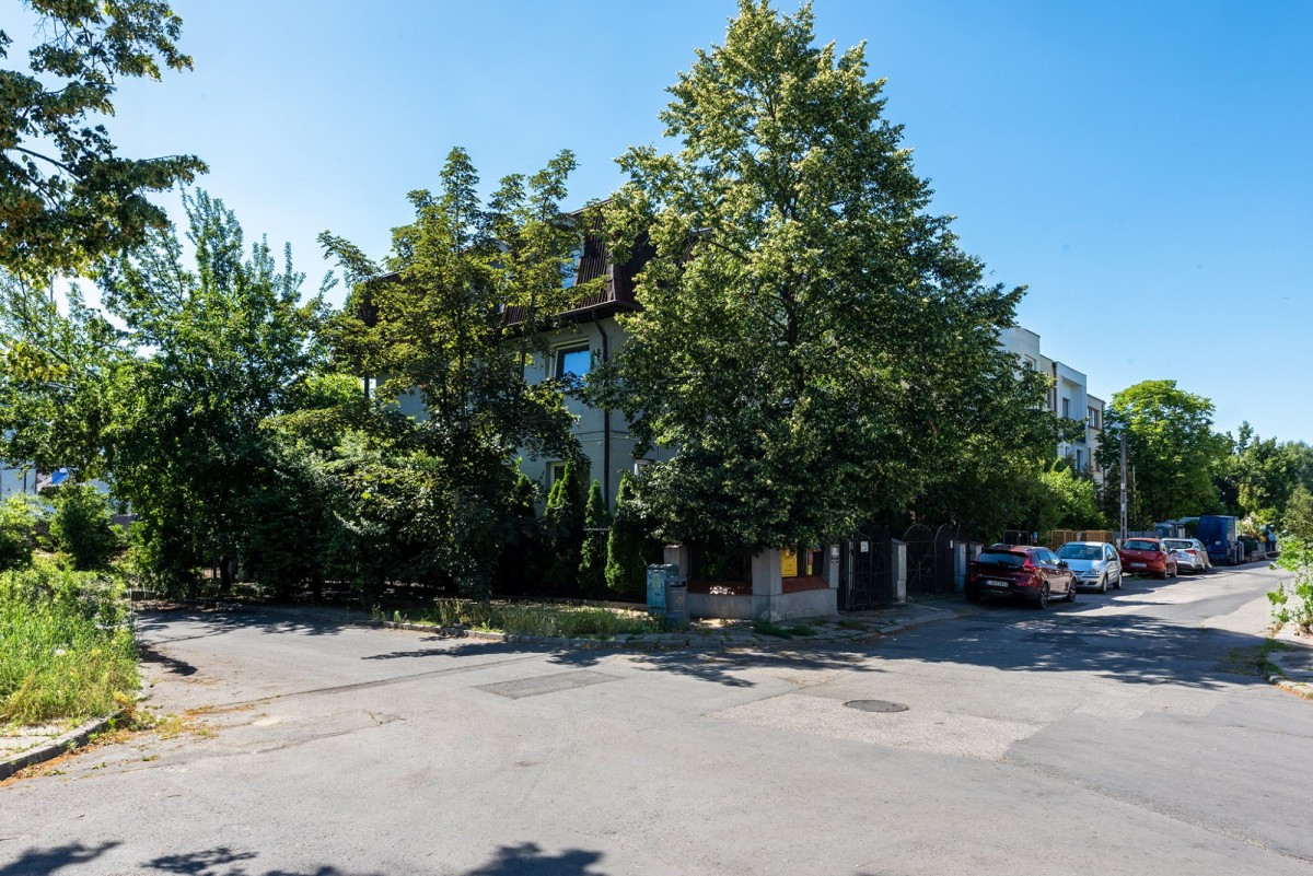 A charming and very green 200m2 plot with numerous plantings, rectangular shape, located in the depths of Sadyba. The segment located on it is currently prepared for business or residential purposes. It offers full office infrastructure, monitoring cameras and air conditioning on each floor. Carpets have been laid on the floors, and wooden boards underneath. The house has huge arrangement potential, a practical layout and a spacious terrace on the first floor. Thanks to the southern, eastern and western exposure, the property lets in a lot of natural light.