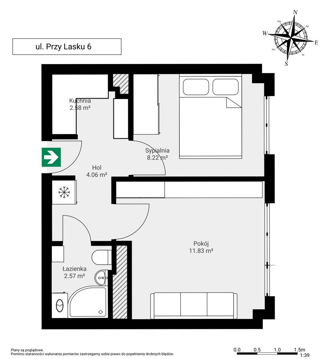 Mieszkanie o powierzchni 30,41 m2 składa się z: