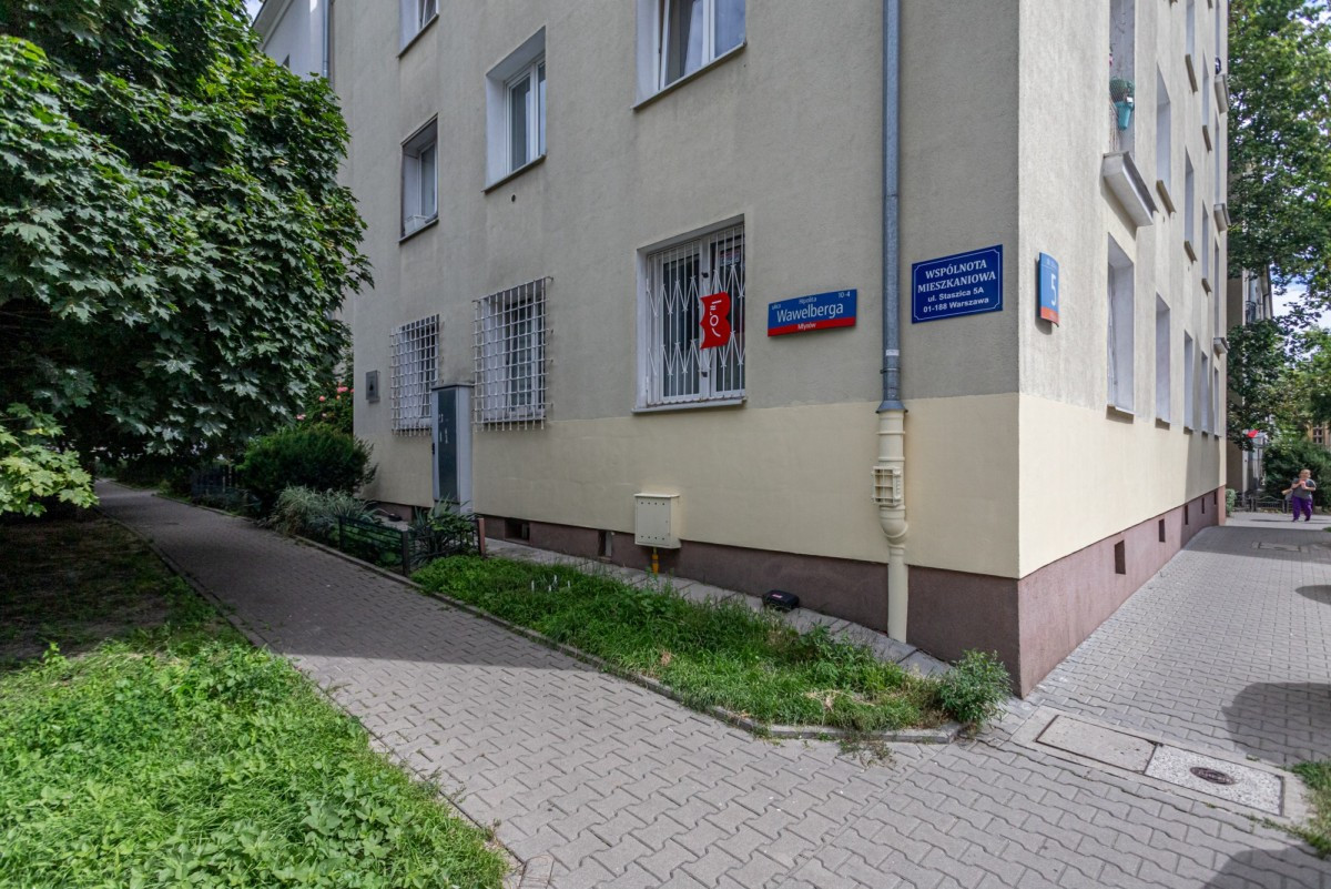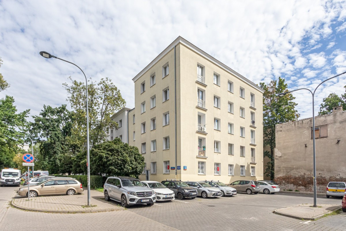 Budynek, w którym znajduje się mieszkanie, to zadbana kamienica z odnowioną elewacją i czystą, schludną klatką schodową. Na parterze funkcjonuje biblioteka publiczna, a spokojne otoczenie zapewnia komfort codziennego życia.