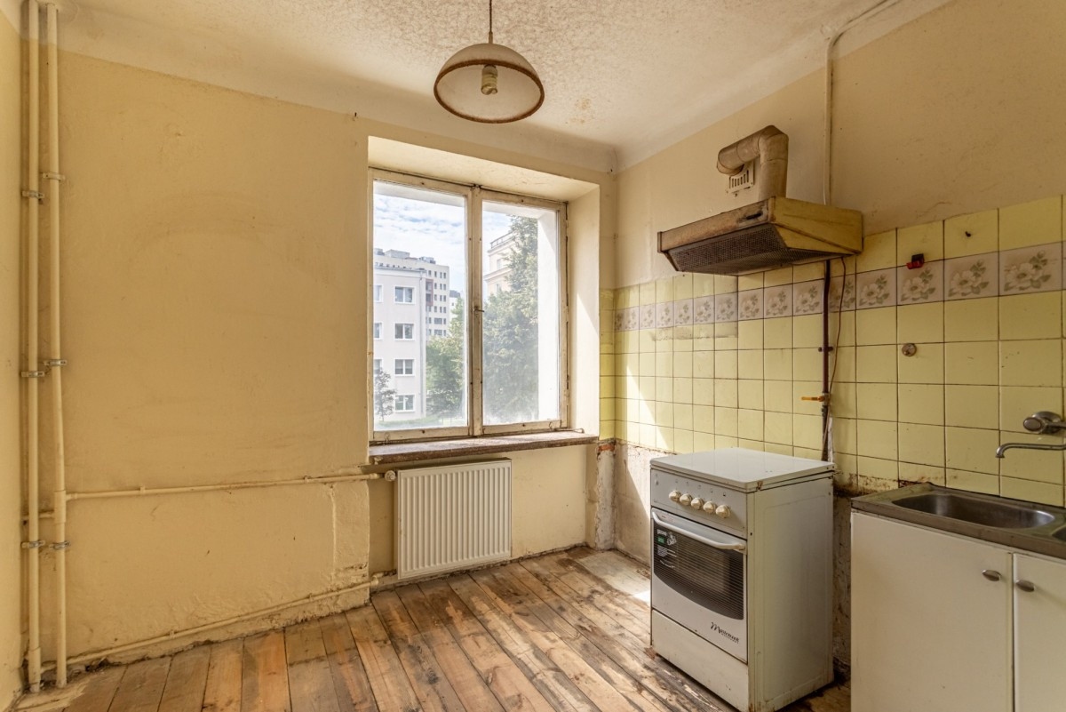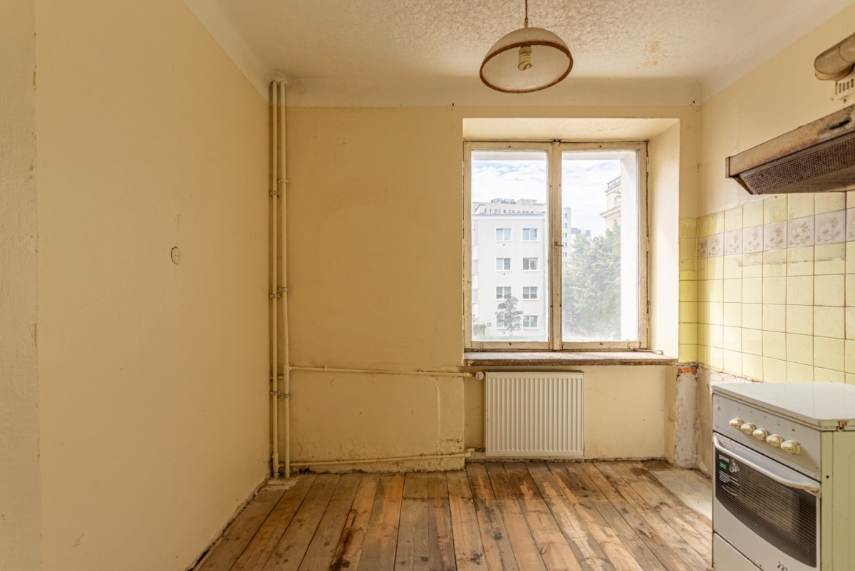 To przestronne, jasne mieszkanie o powierzchni 48 m² znajduje się na pierwszym piętrze zadbanego budynku z odnowioną elewacją i klasycznym charakterem. Nieruchomość wymaga generalnego remontu, co daje nowemu właścicielowi możliwość pełnej aranżacji wnętrza zgodnie z własną wizją.