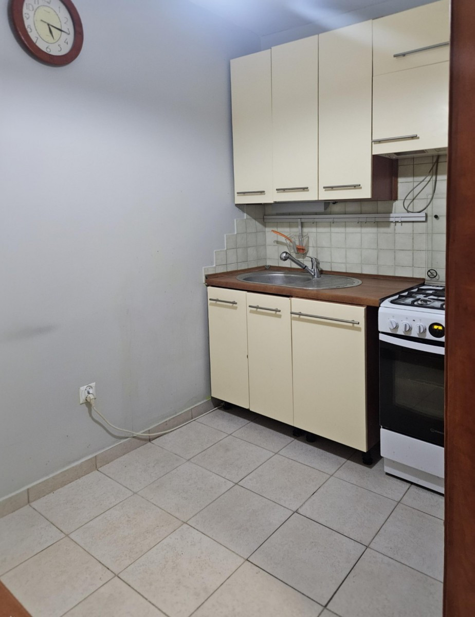 Kuchnia jest częściowo urządzona, a całość wymaga remontu, co daje nowemu właścicielowi możliwość stworzenia przytulnego, funkcjonalnego miejsca według własnych potrzeb i gustu.