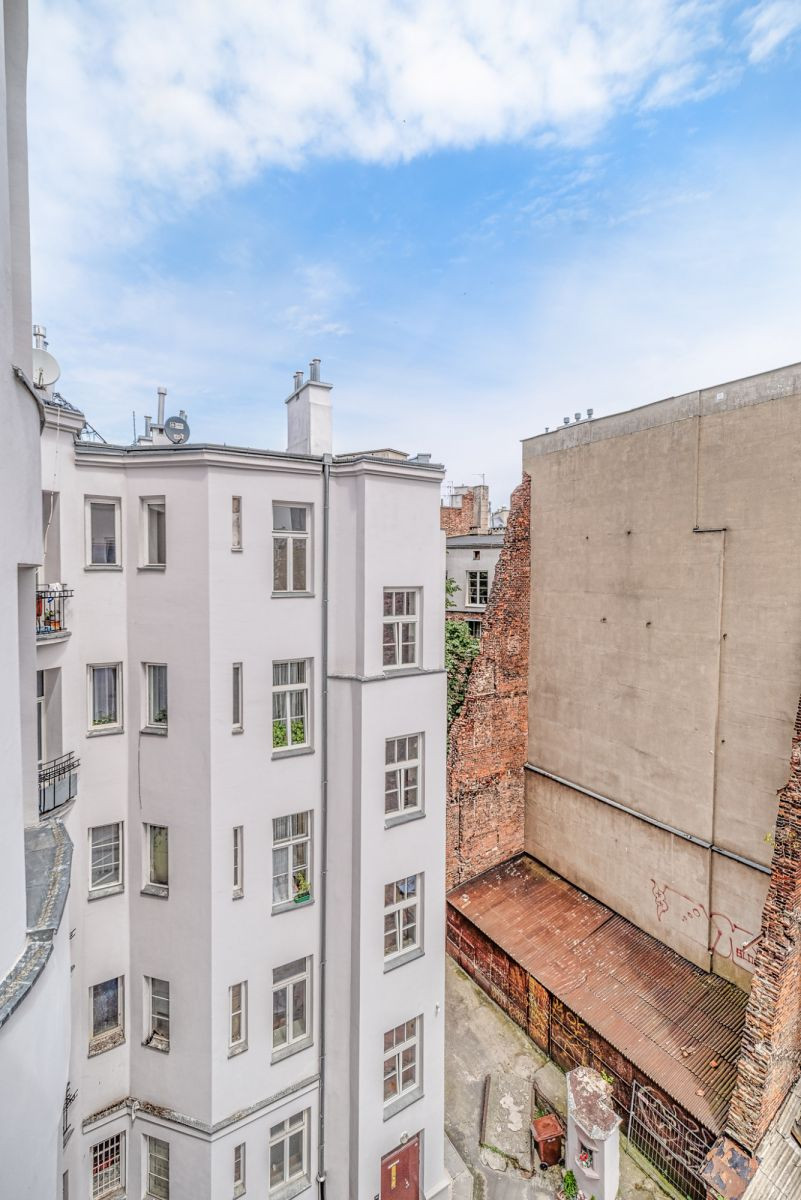 Mieszkanie o wyjątkowym charakterze, położone w przedwojennej kamienicy z odnowioną elewacją, stylową klatką schodową i historycznym dziedzińcem z kapliczką z 1943 roku. Powierzchnia 36 m2 została doskonale zagospodarowana - salon z kuchnią, sypialnia na antresoli, łazienka, przedpokój z szafą oraz balkon z widokiem na malownicze podwórko.