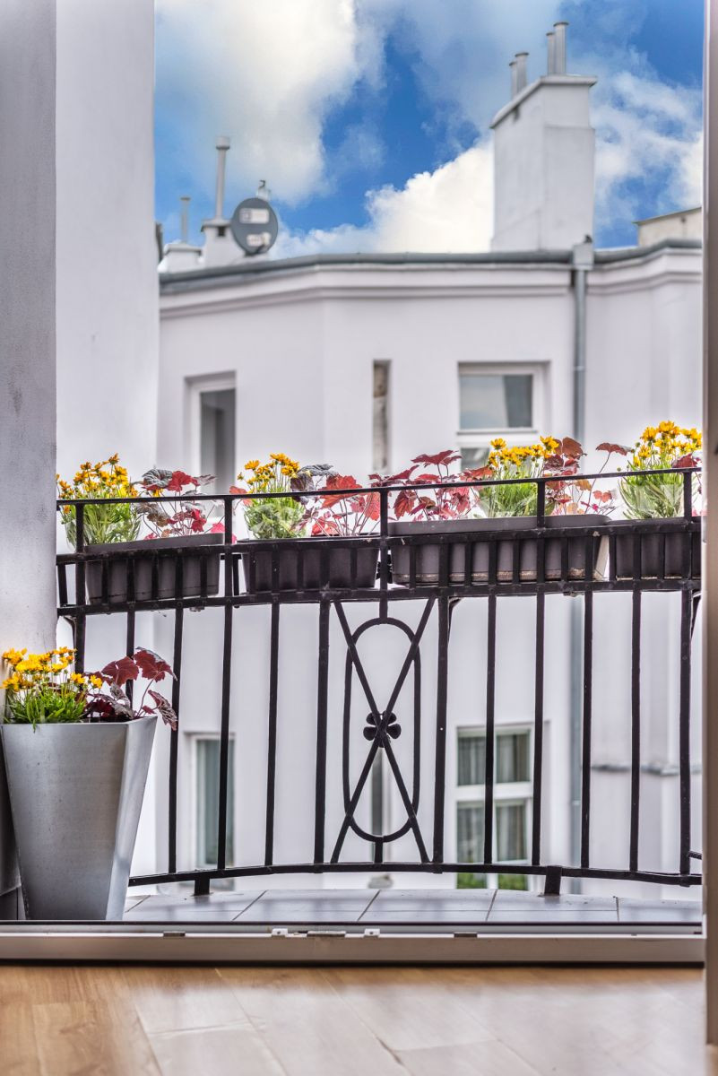 * Balkon z widokiem na historyczne, malownicze podwórko.