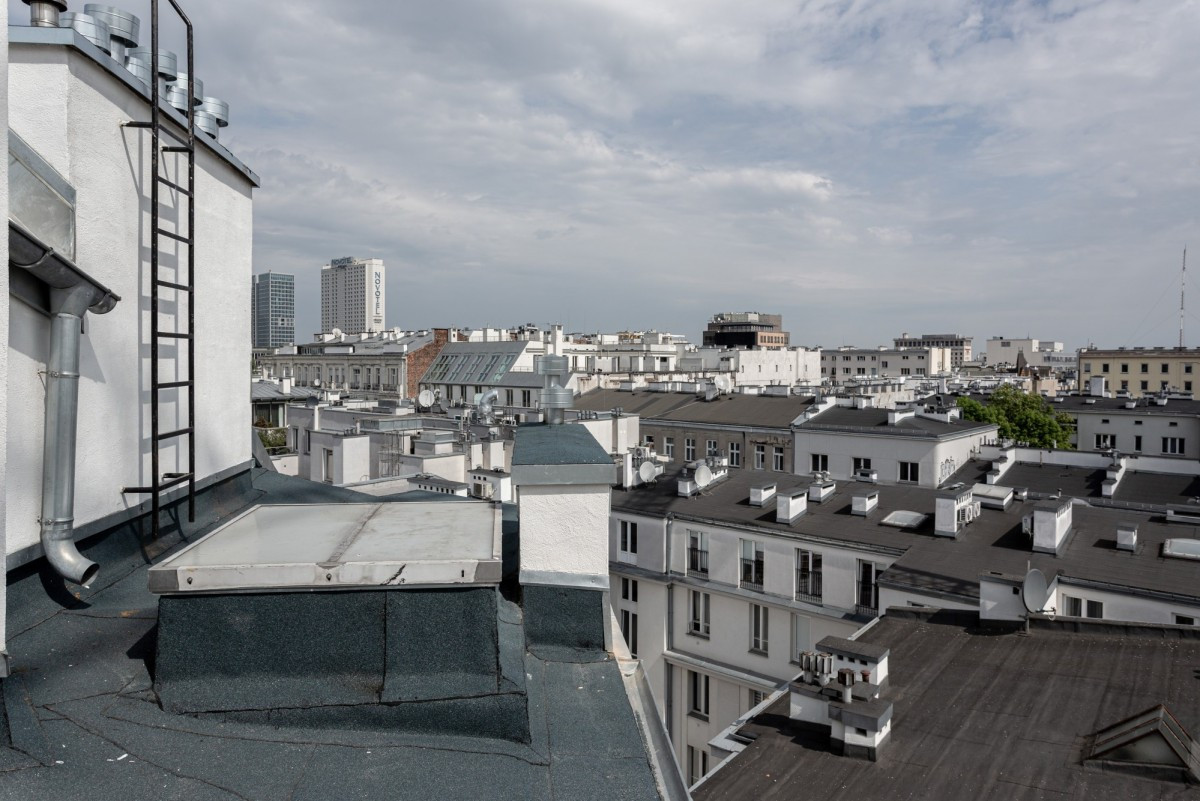 Z nieruchomości można cieszyć się widokiem rozpościerającym się ponad dachami okolicznych kamienic. W oddali natomiast widać panoramę nowoczesnego centrum Warszawy.