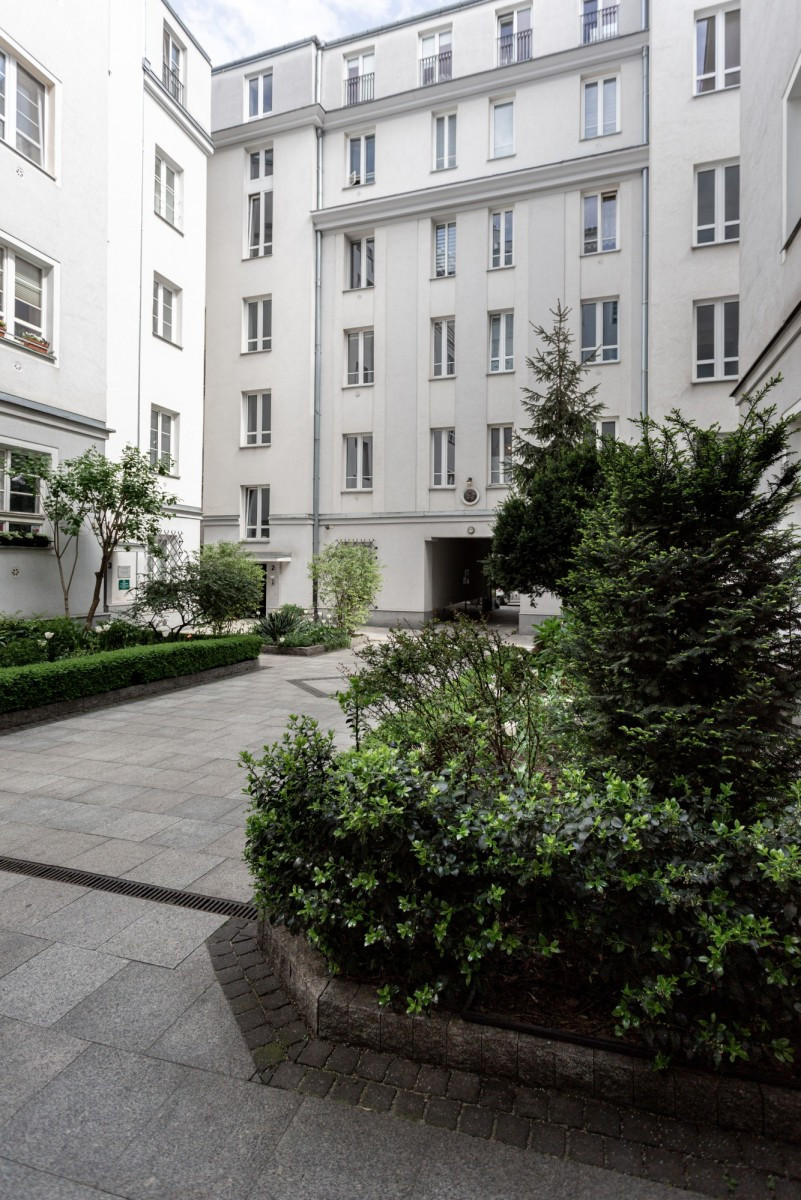 Situated amidst the dense development of Southern Downtown, on the atmospheric Poznańska Street, it is surrounded by renowned restaurants, cafes, shops, boutiques, and theaters. The area is full of life, yet the apartment itself is set deeper within the building, ensuring peace and privacy.