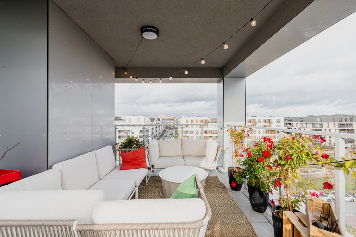 A major advantage of this property is the beautiful view of the green landscape and the newly developed linear park along the entire Oś Królewska, which can be admired directly from the terrace.
