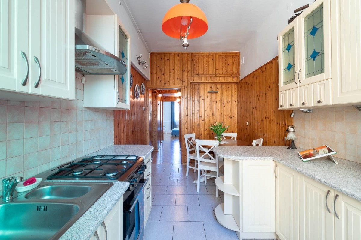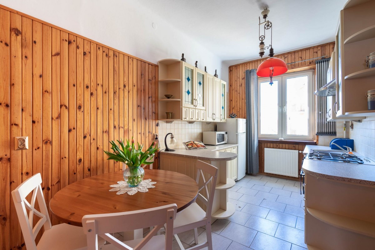 Na mieszkanie składa się salon z wyjściem na balkon od strony Starego Miasta, oddzielna duża i widna kuchnia, sypialnia, łazienka, osobne WC oraz hol. Do dyspozycji najemcy jest również piwnica.