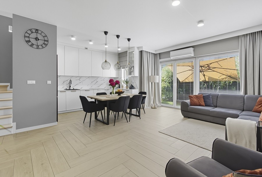 Dom w zabudowie szeregowej (środkowy segment) z 2022 roku wykończony z dbałością o detale i estetykę.