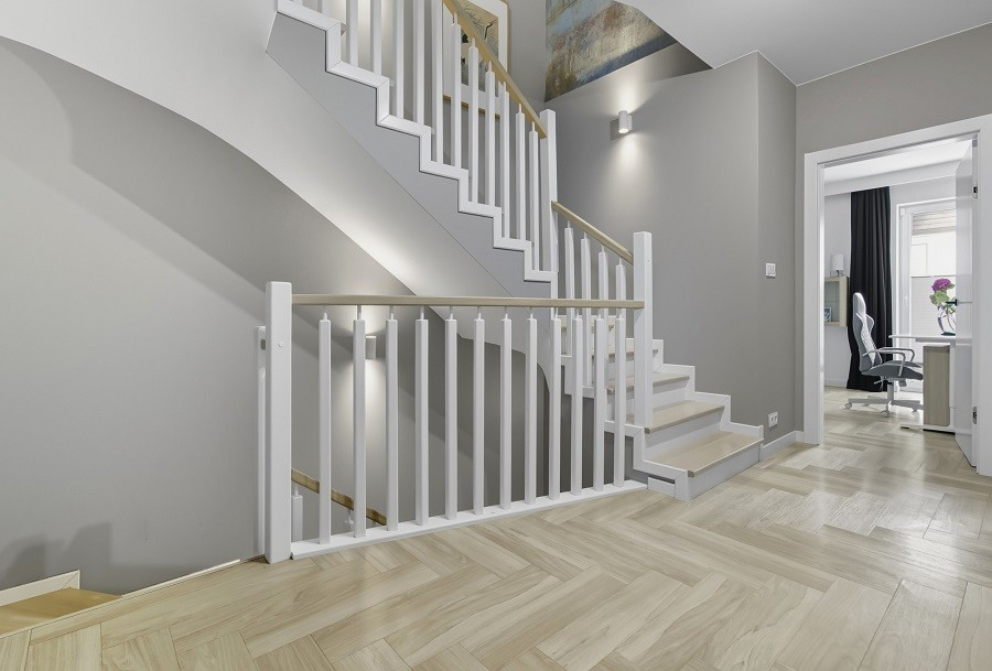 Wnętrze domu rozplanowane na trzech poziomach przez pracownię architektoniczną i dopasowane do wygodnego życia rodziny.