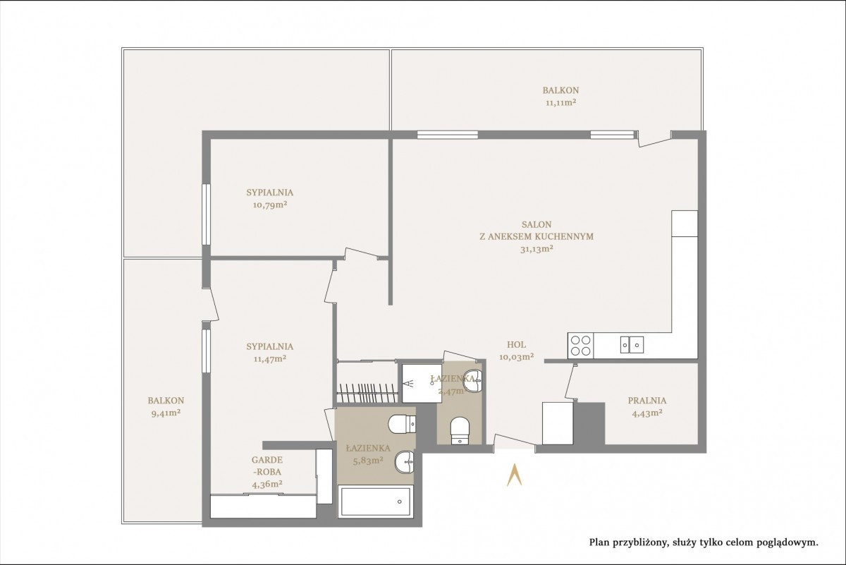· Dwa komfortowe balkony: oranżeria 11,11 m² z widokiem na panoramę miasta oraz loggia 9,41 m²