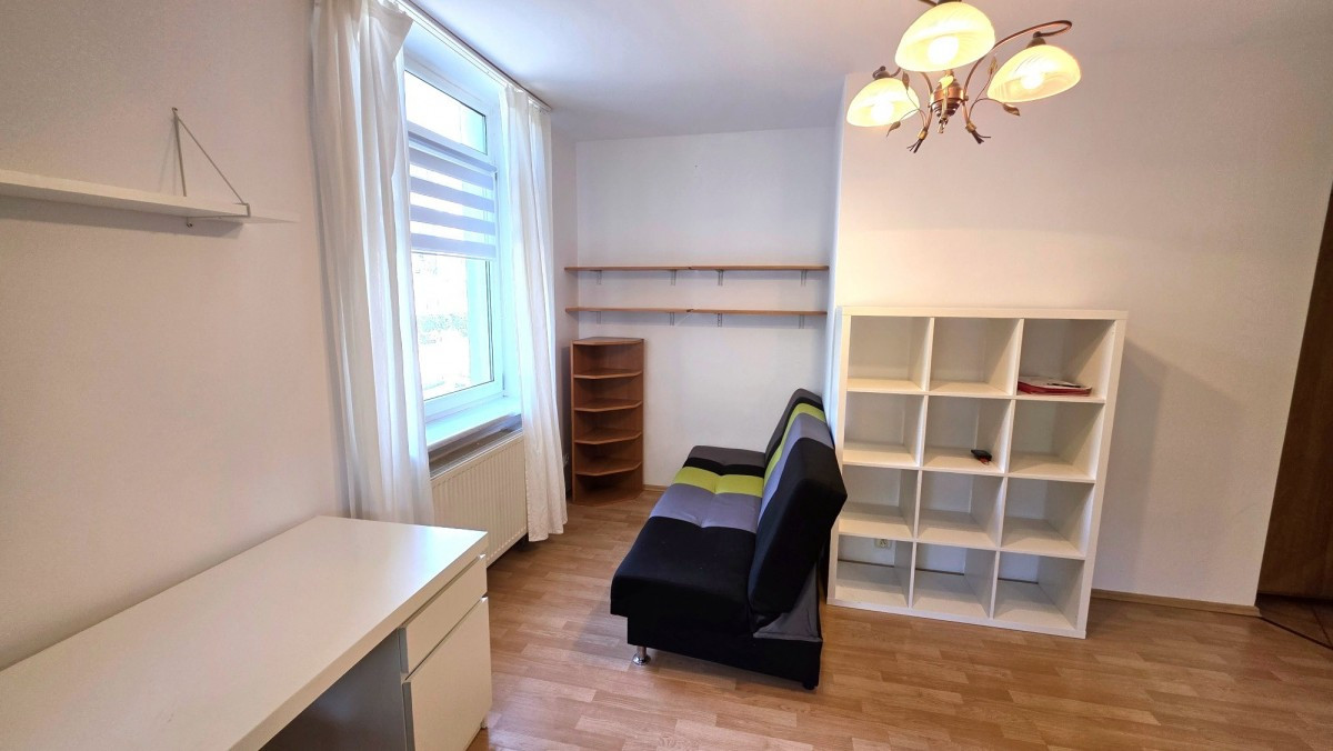 - umeblowanego salonu (wersalka rozkładana, biurko z krzesłem, fotel, stół, 2 regaliki) z obszernym balkonem,