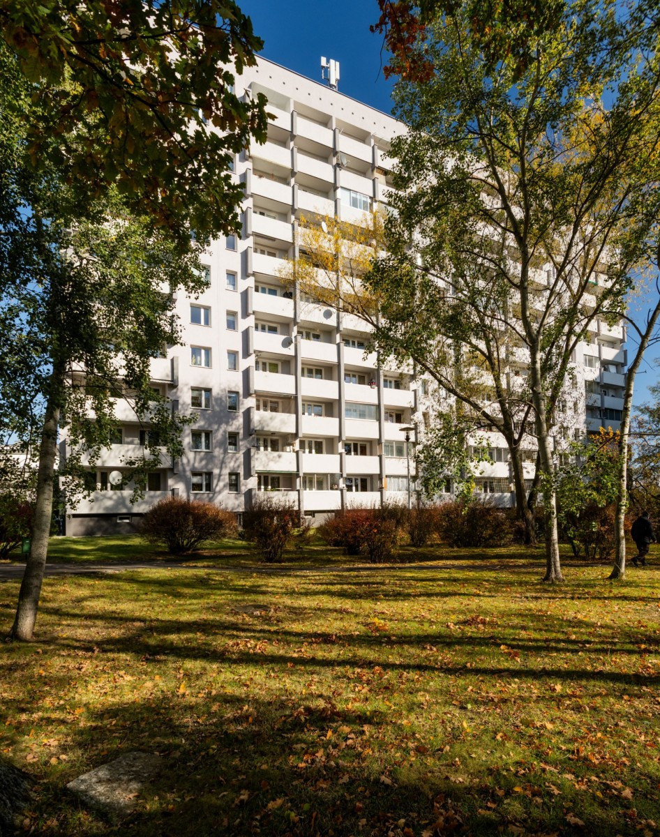 Budynek z 1990 roku, 10-piętrowy, docieplony. Duże odległości między budynkami zapewniają ciszę i spokój.