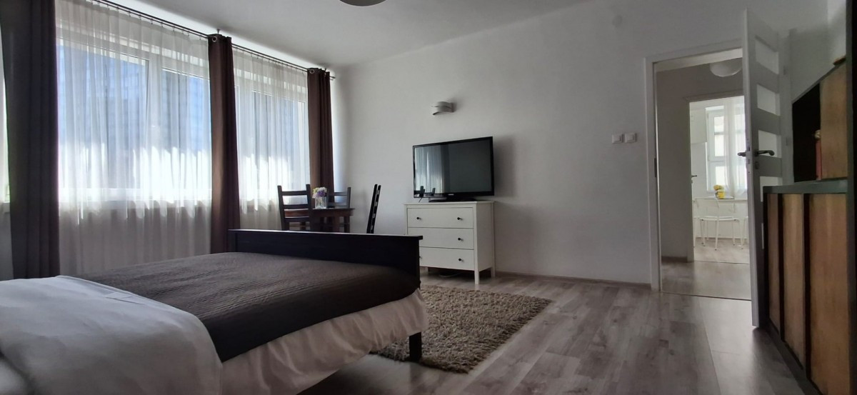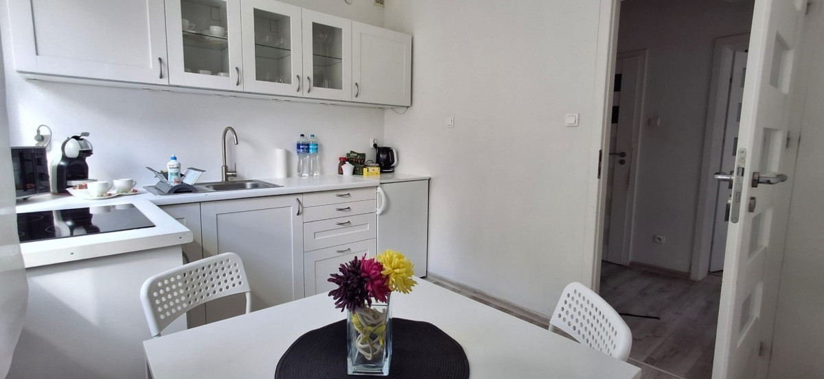 Dwa piękne, duże, ciche pokoje, z widną, przestronną kuchnią, oraz dużą łazienką.