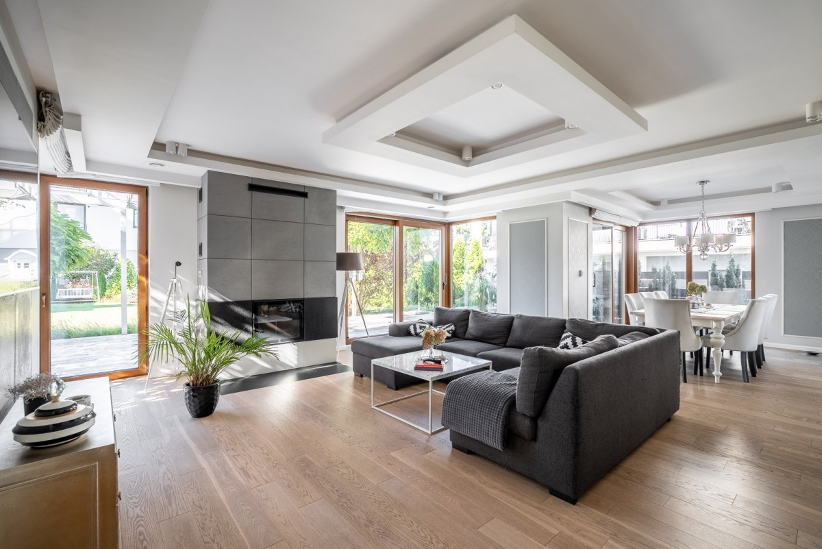 * przestronny salon połączony z jadalnią oraz wyjściem na taras,