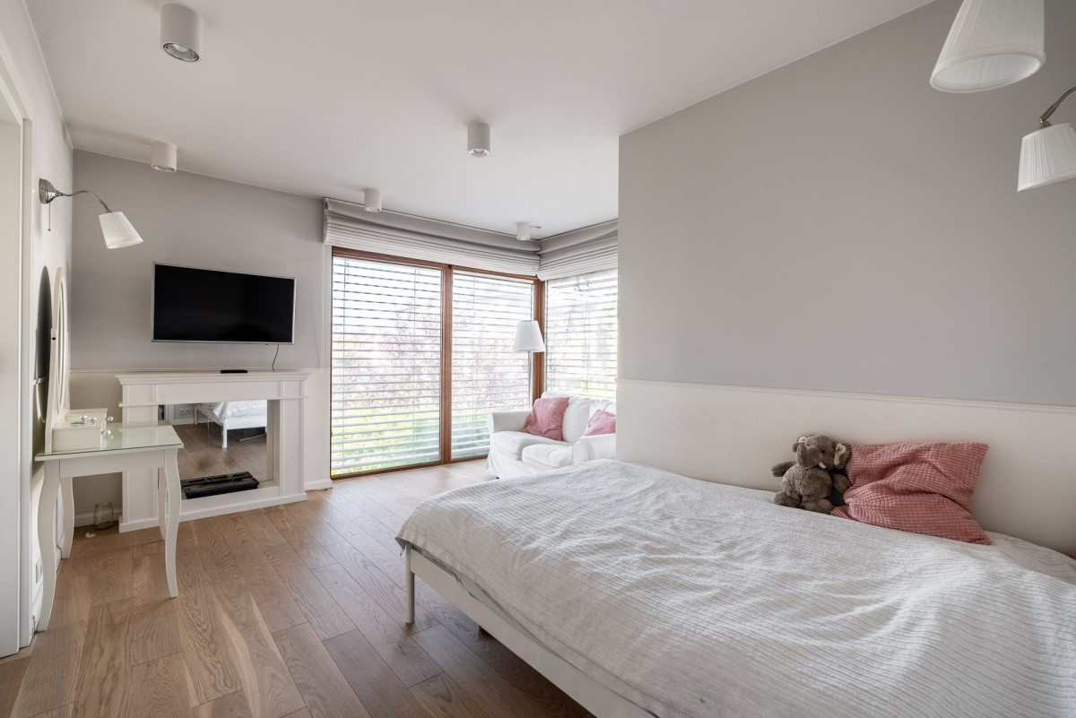 Cały dom posiada ogrzewanie podłogowe, system rekuperacji oraz kominek z płaszczem wodnym. Automatyczne rolety na piętrze oraz zdalnie sterowane zasłony w przestrzeni dziennej.
