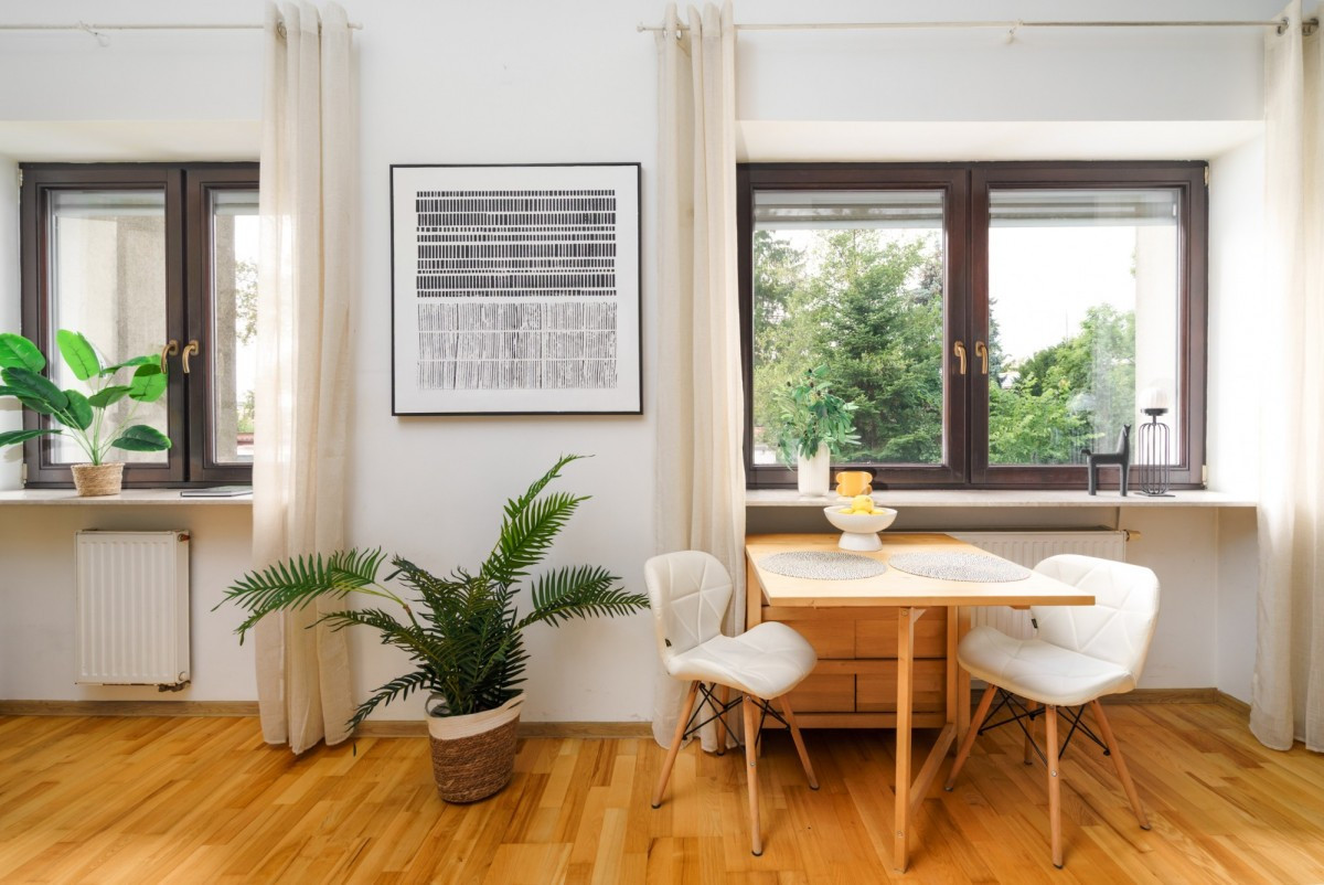Drewniane podłogi, drewniane okna antywłamaniowe, automatyczne rolety zewnętrzne,
