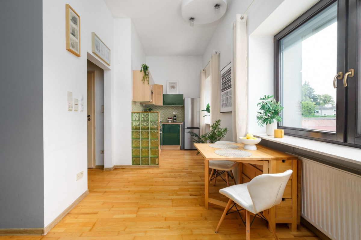 Na sprzedaż przestronna i wyjątkowa kawalerka o powierzchni 27,7 m², położona w zielonej części dzielnicy Nowe Włochy, przy ul. Łuki Wielkie.
