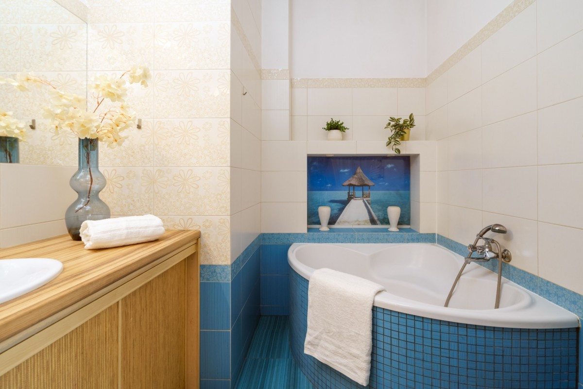 Układ: salon z aneksem kuchennym, duży przedpokój z szafą wnękową, stylowa, marynistyczna łazienka z wanną i zabudowaną pralką,