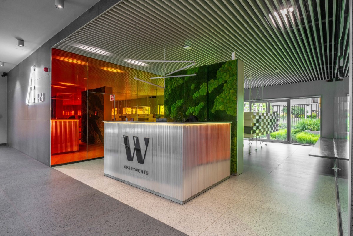 W części wspólnej znajduje się lobby z recepcją, zadaszony dziedziniec z otwarciami w zadaszeniu przez które wychodzą korony drzew, industrialny i nowoczesny styl, unikalne materiały: blacha falista, tęczowe szkło, metalowy ozdobny sufit, skrzynki na listy w formie rzeźby.